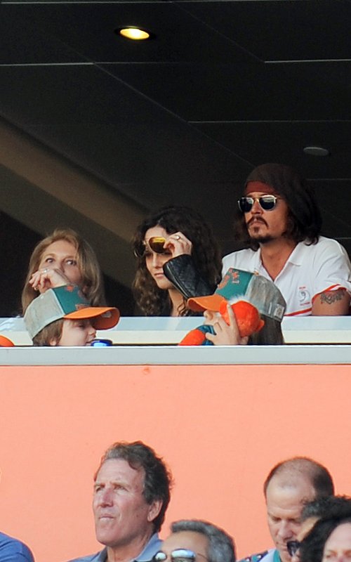Ο Τζόνι Ντεπ πήρε τη γυναίκα του Βανέσσα Παραντί και τα δύο παιδιά τους LIlly Rose και Jack στον αγώνα ποδοσφαίρου των Miami Dolphins.