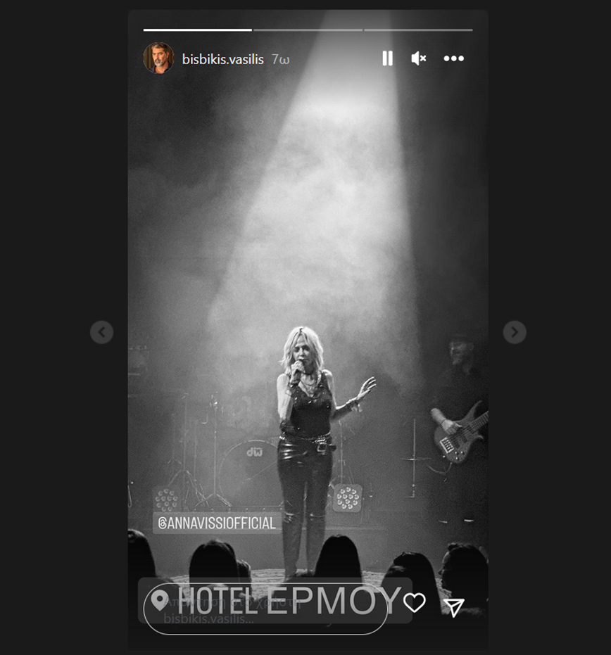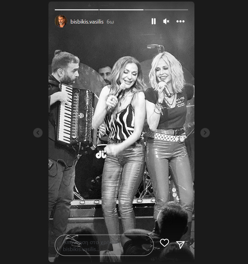 Story από τη βραδιά ανέβασε και ο Βασίλης Μπισμπίκης που ανάρτησε μια φωτογραφία της Άννας Βίσση και μία με τις δύο τραγουδίστριες μαζί.