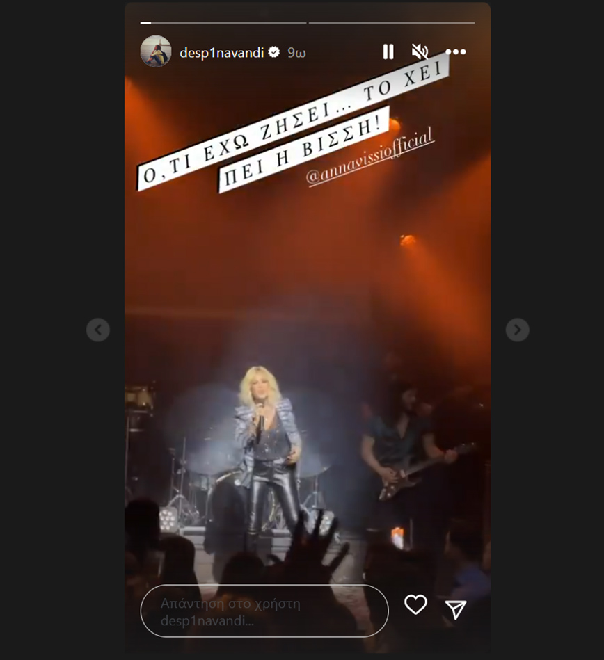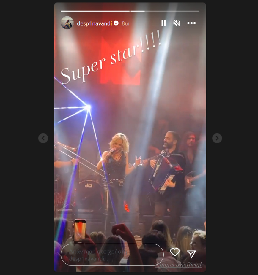 Η Δέσποινα Βανδή ανέβασε Instagram story, χαρακτηρίζοντας την Άννα Βίσση, super star και γράφοντας το περίφημο σύνθημα «ό,τι έχω ζήσει το ‘χει πει η Βίσση».