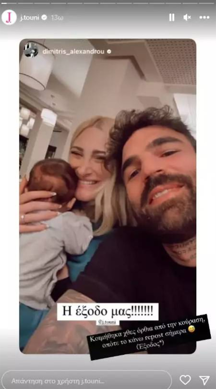 «Η έξοδός μας! Κοιμήθηκα χθες όρθια από την κούραση, οπότε το κάνω repost σήμερα!» έγραψε στο story της η Ιωάννα Τούνη.