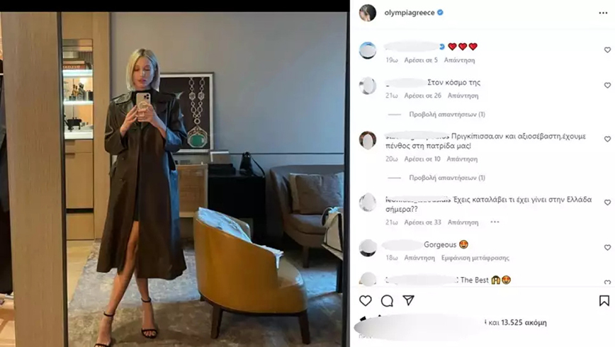 Η ανάρτηση που έκανε λοιπόν στο Instagram «πλυμμήρισε» από σχόλια, με αρκετούς να ζητούν να την διαγράψει, ενώ αρκετοί την κατηγόρησαν για «αναισθησία» και ότι «ζει στον κόσμο της».