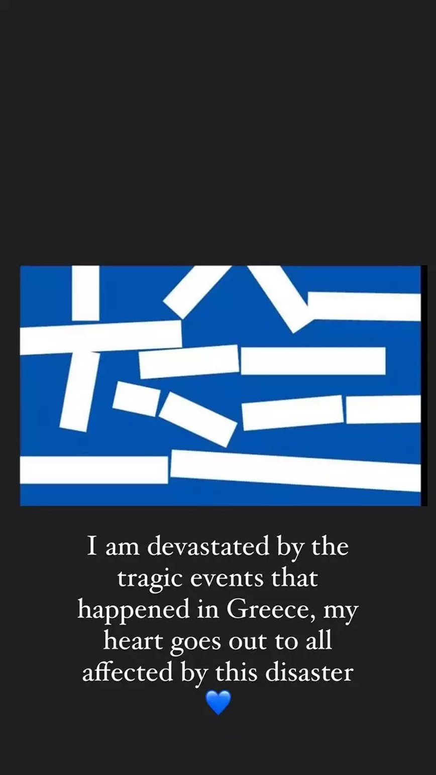 «Είμαι καταρρακωμένη για τα τραγικά γεγονότα που συνέβησαν στην Ελλάδα. Η καρδιά μου πάει σε όλους αυτούς που εκείνους που επηρεάστηκαν από αυτή την τραγωδία».