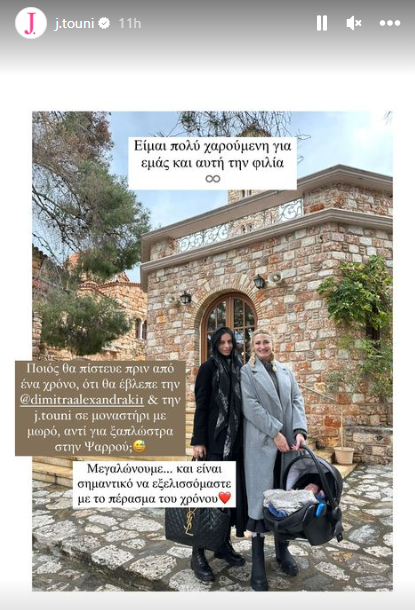 Η Ιώαννα Τούνη μαζί με την φίλη της, Δήμητρα Αλεξανδράκη, βρέθηκε στην Μονή του Αγίου Εφραίμ προκειμένου να πάρει την ευχή ο γιος της που σαράντισε.