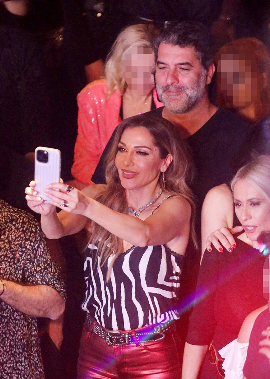 Ο φωτογραφικός φακός απαθανάτισε τόσο την Δέσποινα Βανδή η οποία πείραζε την παρέα της όσο και τον Βασίλη Μπισμπίκη ο οποίος δεν άφηνε από τα μάτια του και την αγκαλιά του την αγαπημένη του αδιαφορώντας για τα αδιάκριτα βλέμματα που τους κοιτούσαν.