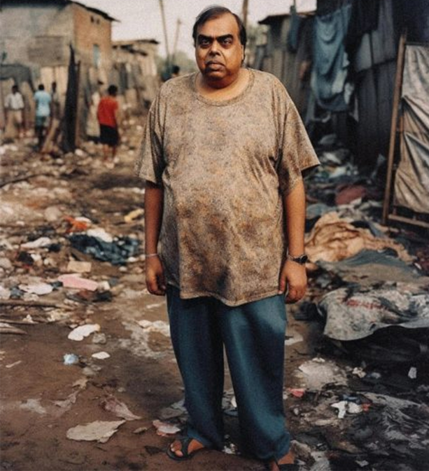 Ένας Ινδός καλλιτέχνης αξιοποίησε την τεχνητή νοημοσύνη για να φτιάξει τις εικόνες ορισμένων από τους πλουσιότερους ανθρώπους στον πλανήτη στον κόσμο ως ρακένδυτους να ζουν σε φτωχογειτονιές. Το φωτογραφικό υλικό που ανέβασε έγινε viral δημιουργώντας θύελλα στα μέσα κοινωνικής δικτύωσης με έναν να σχολιάζει: «Αυτό είναι επικό».