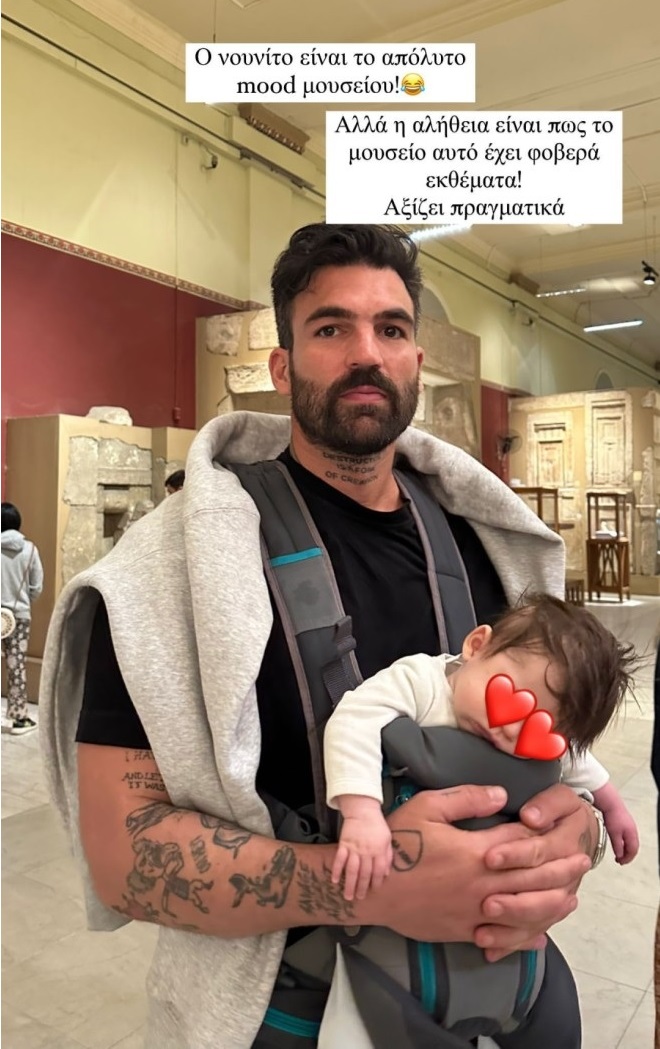Βέβαια, κάποια στιγμή αποκοιμήθηκε στον μάρσιππο που φορούσε ο μπαμπάς του, την ώρα που επισκέφθηκαν κάποιο μουσείο στο Κάϊρο.
