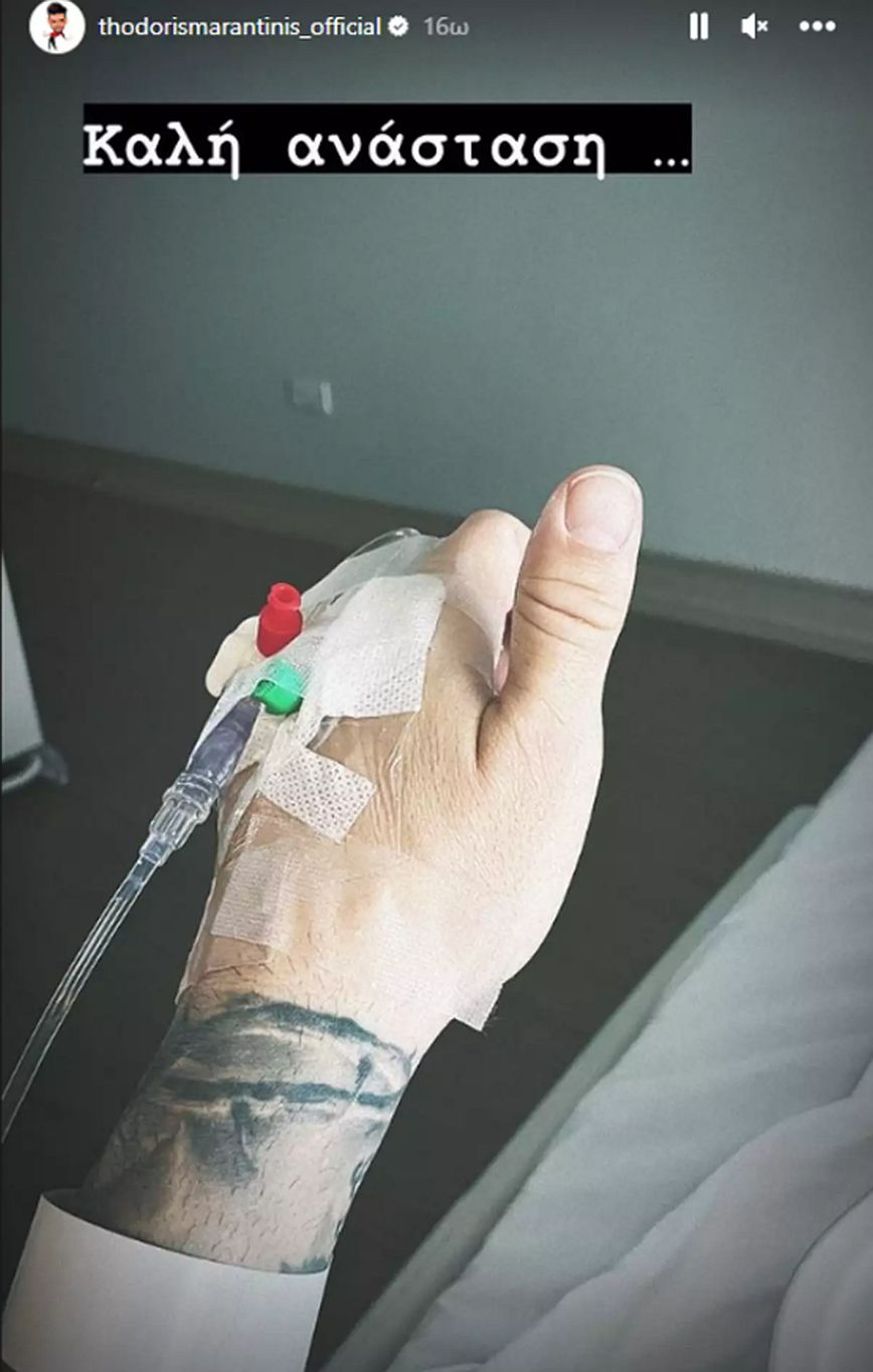 Στο νοσοκομείο φαίνεται πως βρίσκεται από χθες ο Θοδωρής Μαραντίνης. Ο τραγουδιστής δημοσίευσε στο λογαριασμό του στο Instagram μια φωτογραφία στην οποία βλέπουμε το χέρι του στο οποίο έχει τοποθετηθεί ορός.