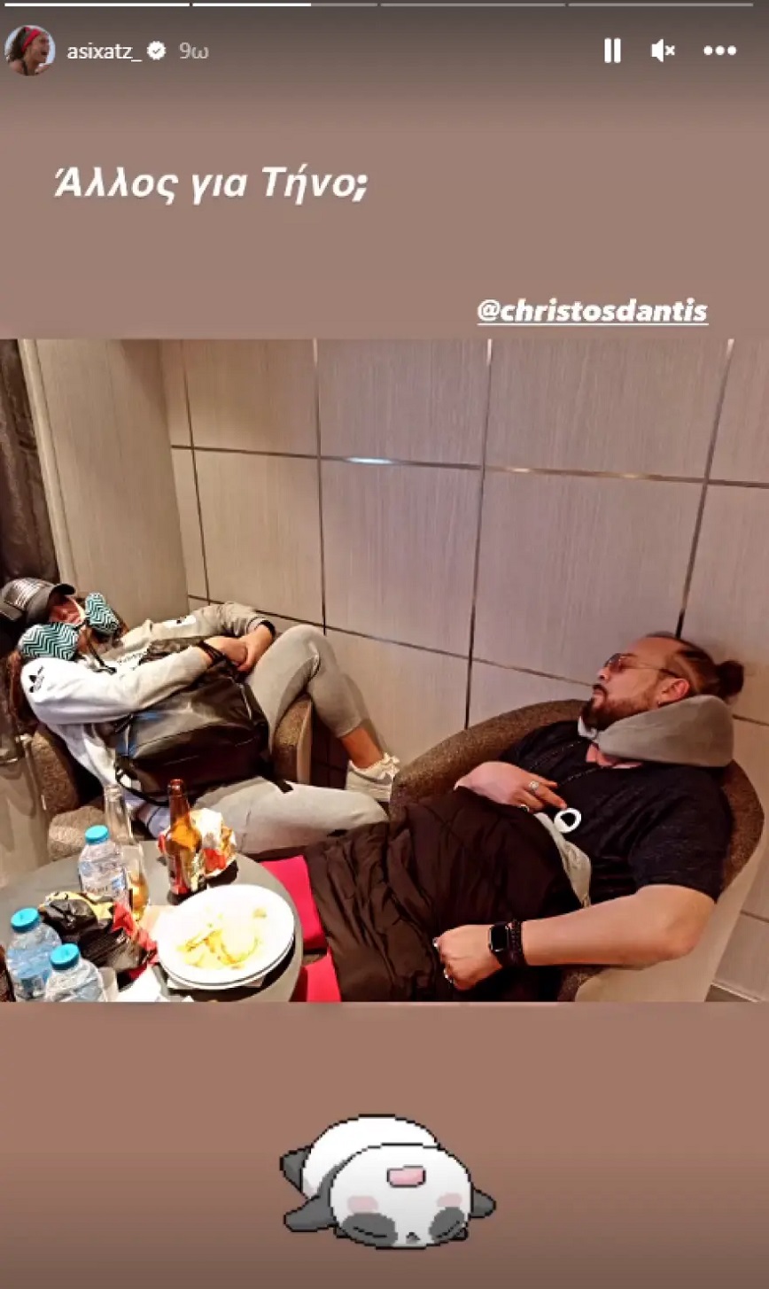 Το στιγμιότυπο ανάρτησε μέσω story, η Ασημίνα Χατζηανδρέου, μέσα από το οποίο αποκάλυψε τον προορισμό του ταξιδιού τους, γράφοντας: «Άλλος για Τήνο;».
