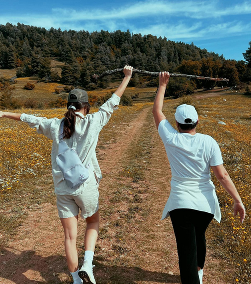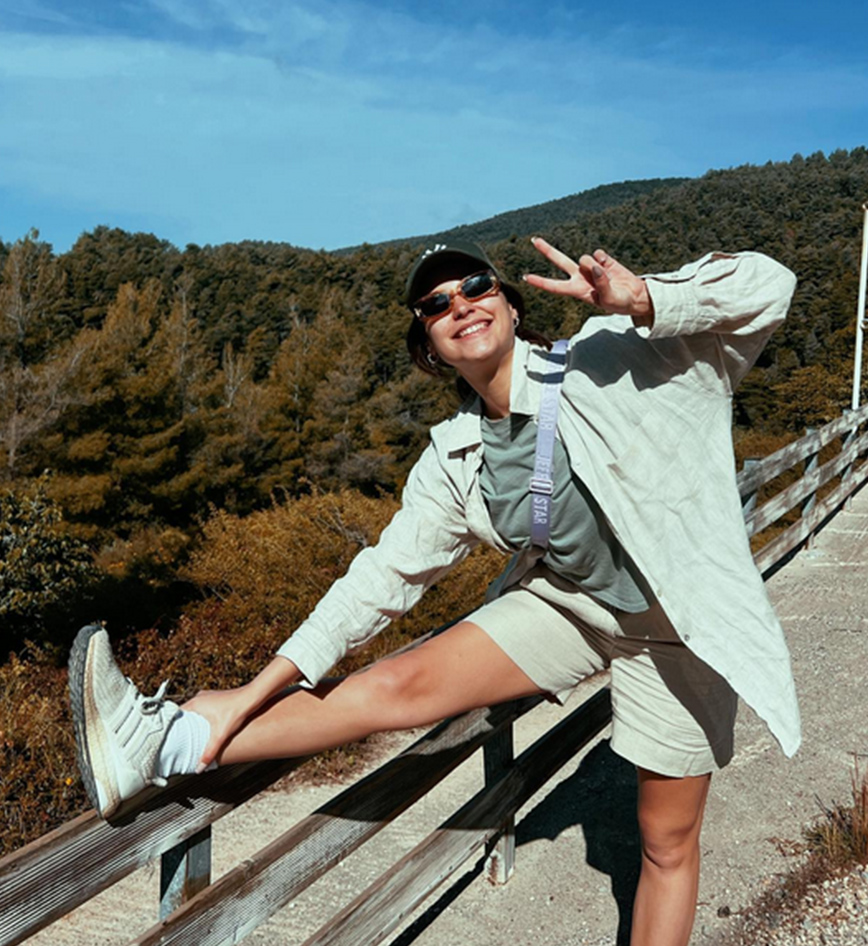 «Περπάτησες. Ξεκινήσαμε από την Καμαρίτσα και 5 ώρες και 21,7km μετά, φτάσαμε στον Αη Γιάννη τον Ρώσο. Κάθε χρόνο, κοντά στην ημέρα της γιορτής του, κάνουμε αυτήν την διαδρομή με τα πόδια. Φέτος εγώ το είχα κάνει και τάμα.. Και του χρόνου λοιπόν! Υ.Γ.: όχι δεν γυρνάμε με τα πόδια πισω, μας παίρνουν με αυτοκίνητο. Υ.Γ.2.: σήμερα είμαστε πολύ ΠΟΛΥ πιασμένοι. Υ.Γ.3: Χρόνια πολλά σε όλες τις μανούλες και στην δική μου την μάνα που με αντέχει» αναφέρει χαρακτηριστικά στη λεζάντα της φωτογραφίας της.
