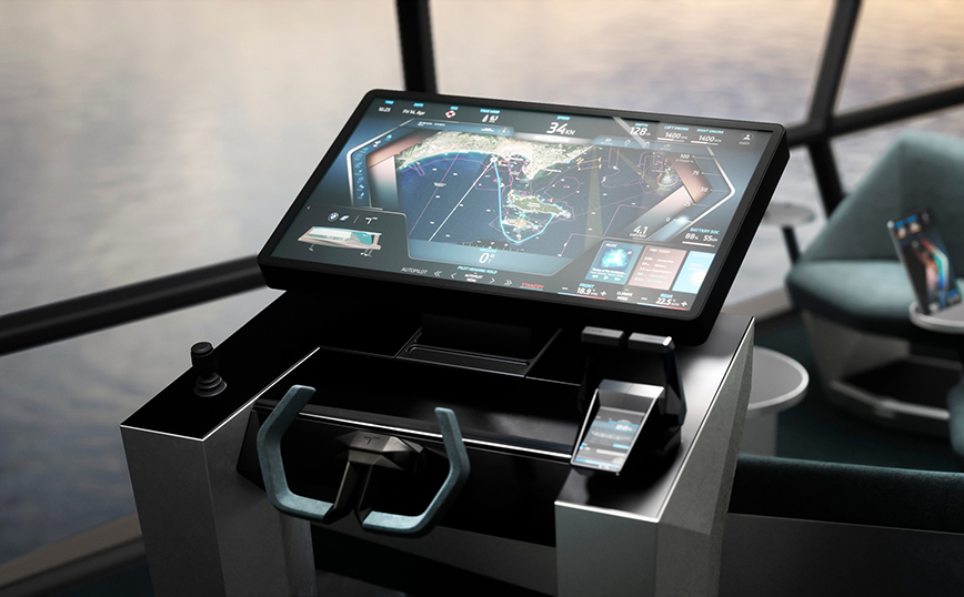 Ο σταθμός χειριστηρίων βρίσκεται κεντρικά στο κατάστρωμα και είναι ιδιαίτερα ελκυστικός με το τιμόνι και τα όργανα σε αυθεντικό σχεδιασμό BMW. Στη θέση της παραδοσιακής σειράς ναυτικών οργάνων βρίσκεται μια νέα ερμηνεία της διεπαφής της μάρκας που περιέχει όλες τις σημαντικές λειτουργίες σε μια ψηφιακή μονάδα ελέγχου. Το σημείο επαφής μεταξύ ανθρώπου και μηχανής είναι μια οθόνη αφής 32-ιντσών με ανάλυση 6k, η οποία διαθέτει την εμφάνιση και την αίσθηση του συστήματος ελέγχου/λειτουργίας iDrive.