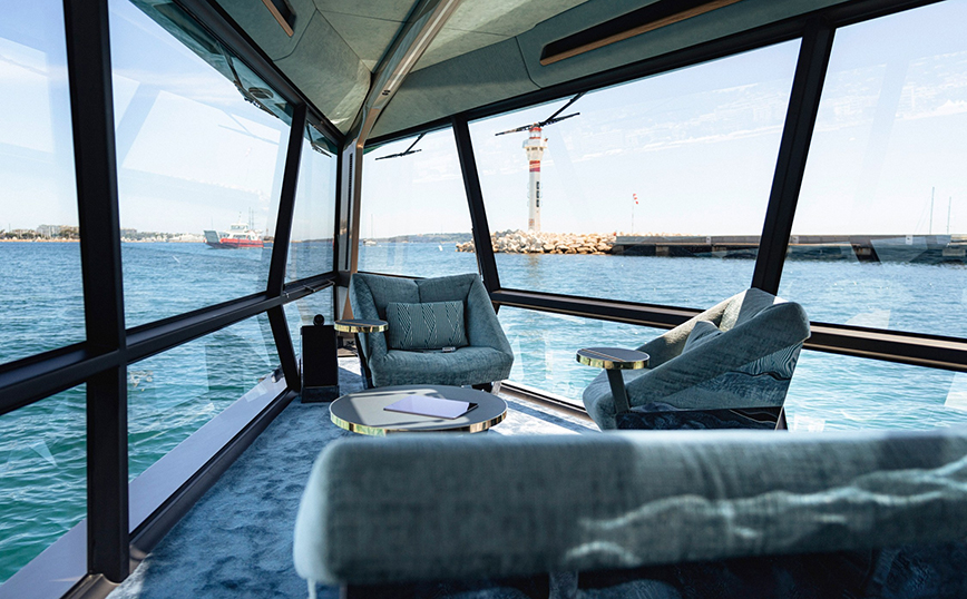 Τα περιστρεφόμενα κατά 360° καθίσματα αποτελούν τον πυρήνα μιας εμπειρίας που εστιάζει στο χρήστη, με όλα τα βασικά χαρακτηριστικά – συμπεριλαμβανομένου ενός συστήματος infotainment βασισμένου σε tablet – να βρίσκονται σε θέση άμεσης πρόσβασης. Με απλή περιστροφή, τα καθίσματα μεταβάλλουν τη διάταξη του χώρου επιτρέποντας την κοινωνική αλληλεπίδραση. Έτσι δημιουργείται ένας εξαιρετικός τόπος συνάντησης που μπορεί να σταθεί άνετα σε κάθε λιμάνι.