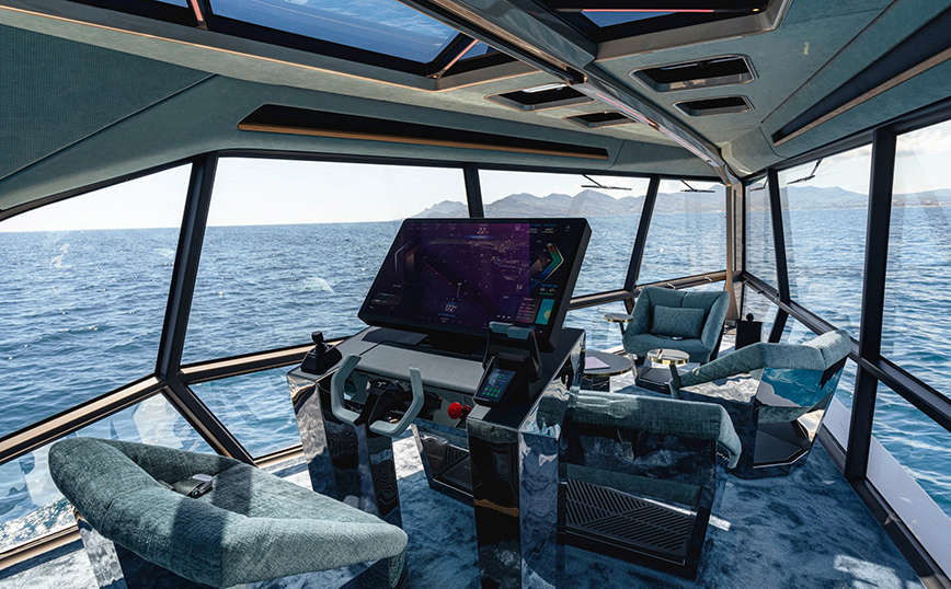Την ίδια στιγμή, το σύστημα Dolby Atmos εξασφαλίζει ένα εξίσου εντυπωσιακό ηχητικό τοπίο μέσα στο σκάφος. Το ηχόχρωμα του συστήματος κίνησης και τους ευχάριστους διαισθητικούς ήχους λειτουργίας υπογράφει ο βραβευμένος με δύο Όσκαρ συνθέτης κινηματογραφικής μουσικής, Hans Zimmer. Οι επαναστατικές ηχητικές δημιουργίες επενδύουν μουσικά μία νέα εποχή στην απόλαυση των βιώσιμων ταξιδιών στο νερό.