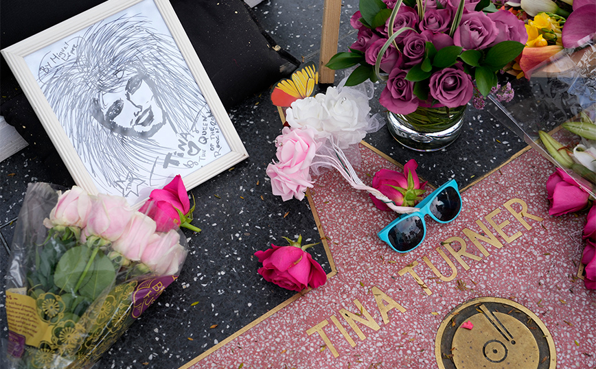 Αφήνοντας λουλούδια, σημειώματα και προσωπικά τους αντικείμενα στο αστέρι της στη λεωφόρο Δόξας στο Χόλιγουντ αποχαιρετούν οι θαυμαστές της τη θρυλική τραγουδίστρια Τίνα Τέρνερ που έφυγε από τη ζωή στα 83 της.