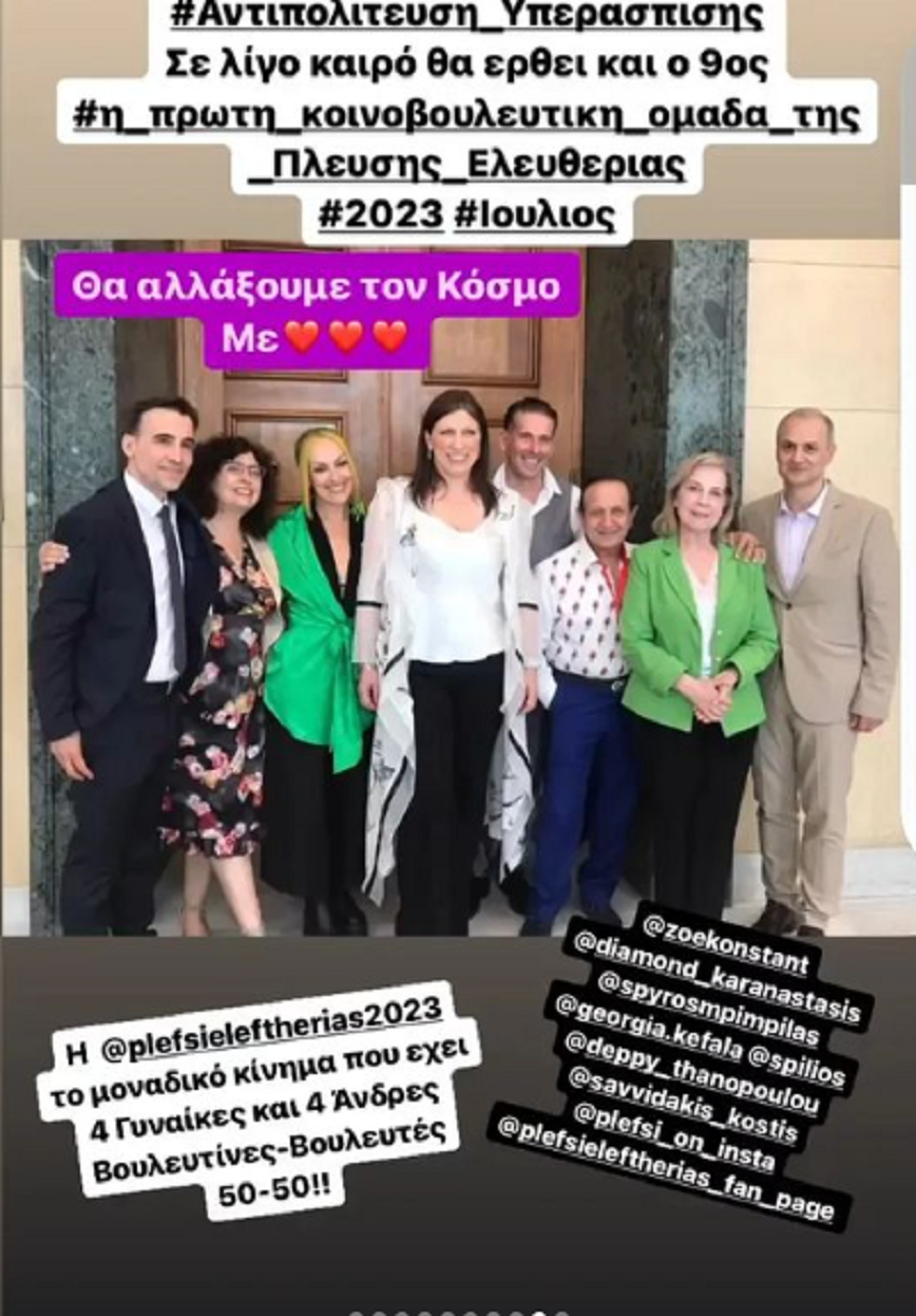 «Με άπειρη χαρά και ευθύνη μπαίνουμε σιγά σιγά στο νέο κλίμα του σπουδαίου χώρου που πάμε να υπηρετησουμε. Άσχετα με τα ύποπτα, υποκινουμενα συνεχιζόμενα κακεντρεχή σχόλια υποκριτών νεουπερσυντηρητικών, ψευτοσεμνότυφων, αντιδημοκρατων που δεν σέβονται την ελευθερία της έκφρασης και τις ιδιαιτεροτητες άλλων ανθρώπων, ιδιαίτερα όταν είναι καλλιτέχνες, εμείς προχωράμε μπροστά χωρίς να αλλάζουμε τις προσωπικότητες και τον χαρακτήρα μας με μόνο στόχο να υπηρετησουμε τα προβλήματα των πολιτών (υγεία,παιδεια, ανεργία,ακρίβεια,έλλειψη συλλογικων συμβάσεων,καταπάτηση ανθρωπινων δικαιωμάτων κλπ).Η αγάπη μου και για τα αδεσποτα ζώα και το ενδιαφέρον μου για τα υπέροχα πτηνά, τους παπαγάλους που κατακλύζουν πλέον την Αθήνα θα παραμείνουν πηγή έμπνευσης.Tο υπέροχο πολυσυζητημενο πουκάμισο με τα παπαγαλάκια είναι vintage και δώρο του αείμνηστου σπουδαίου μου φίλου του θρυλικού ΒarBar.(Κώστας Παναγιωτόπουλος).Ευχαριστώ τον δημιουργό του υπέροχου ψηφιακου παπαγάλου με πουκάμισο α λα Μπιμπίλα που κατέκλυσε με χιουμορ και εντονα μηνύματα αγαπης το διαδίκτυο …».