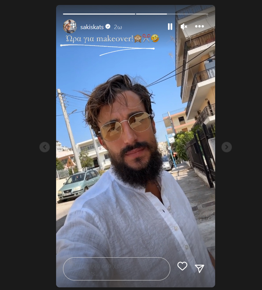 Στη συνέχεια με δεύτερο στόρι του, στο οποίο φοράει ένα λευκό πουκάμισο, ο Σάκης Κατσούλης ενημέρωσε τους ακολούθους του ότι ετοιμάζεται για makeover.