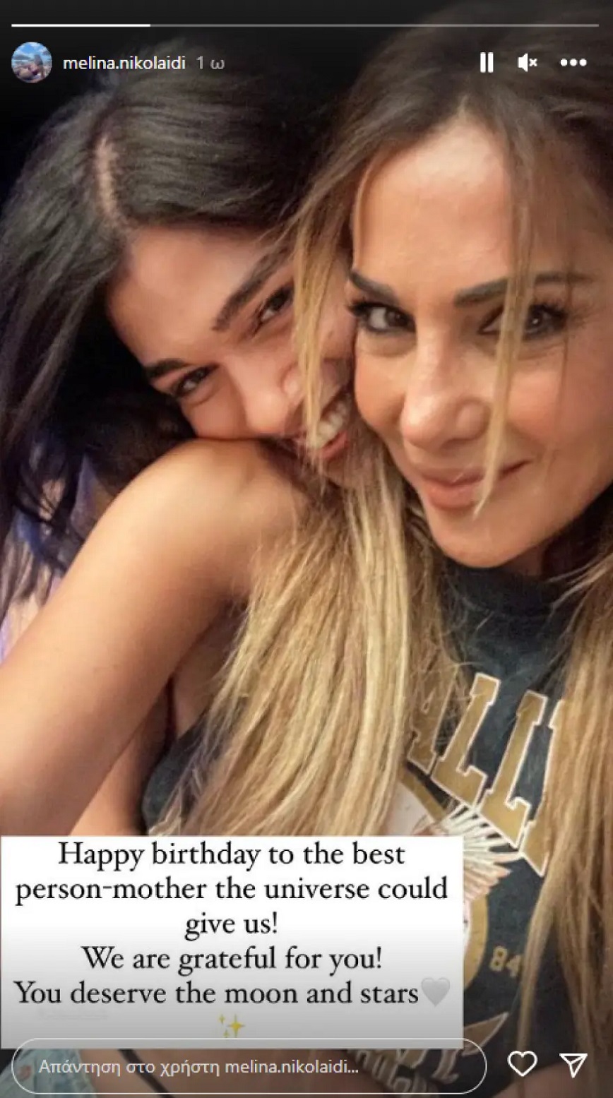 «Χρόνια πολλά στην καλύτερη μαμά, στον καλύτερο άνθρωπο που θα μπορούσε να μας δώσει το σύμπαν! Είμαστε ευγνώμονες! Σου αξίζουν το φεγγάρι και τα αστέρια», έγραψε η Μελίνα Νικολαΐδη.