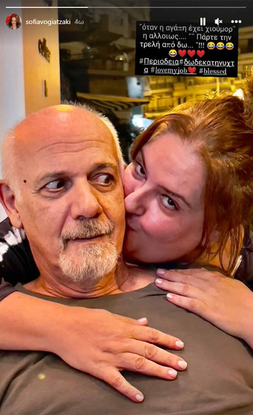 Στη φωτογραφία που δημοσίευσε η Σοφία Βογιατζάκη στον προσωπικό της λογαριασμό στο Instagram, τη βλέπουμε να δίνει μία μεγάλη αγκαλιά στον συνεργάτη της και να γράφει στη λεζάντα: «Όταν η αγάπη έχει χιούμορ ή αλλιώς “πάρτε την τρελή από εδώ”».