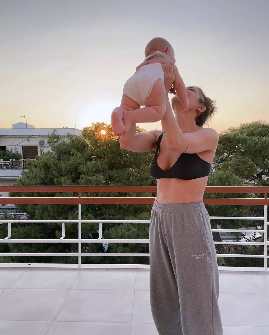 Η Μαίρη Συνατσάκη πόσταρε μια φωτογραφία αγκαλιά με την κόρη της στο μπαλκόνι του σπιτιού της φορώντας φόρμα και σουτιέν και αφού ευχαρίστησε για τις ευχές απάντησε στο σχόλιο της follower της.