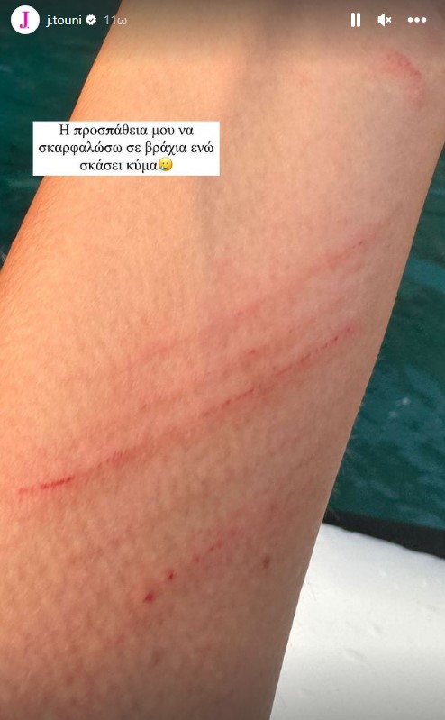 «Η προσπάθεια μου να σκαρφαλώσω σε βράχια ενώ σκάει το κύμα», έγραψε η γνωστή Influencer στο Instagram, δημοσιεύοντας και φωτογραφίες από τα σημάδια στο σώμα της.