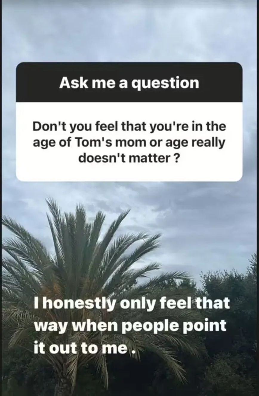 «Δεν αισθάνεσαι ότι είσαι στην ηλικία της μαμάς του Τομ; Ή η ηλικία δεν έχει πραγματικά σημασία;», ρώτησε ένας ανώνυμος θαυμαστής.
