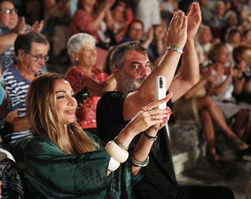 Τα φωτογραφικά φλας μονοπώλησαν η Δέσποινα Βανδή και ο Βασίλης Μπισμπίκης που εμφανίστηκαν στο αρχαίο Αργολικό θέατρο πιασμένοι χέρι χέρι και ντυμένοι σχεδόν ασορτί.