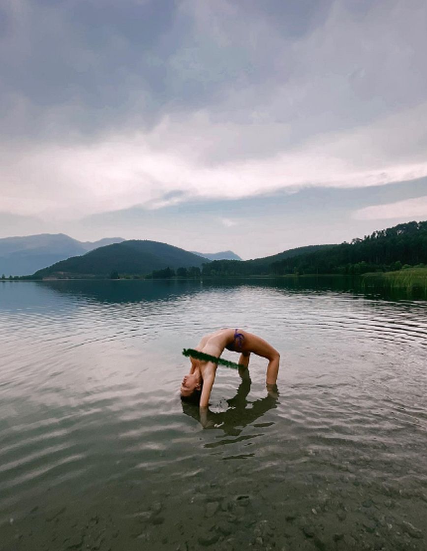 Η όμορφη και ταλαντούχα ηθοποιός που πρωταγωνιστεί στη σειρά του Χριστόφορου Παπακαλιάτη «Maestro», έχει πετάξει το πάνω μέρος από το μπικίνι της και κάνει ανάποδη γέφυρα μέσα στη λίμνη.