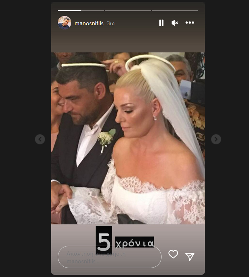 Από πλευράς του, ο Μάνος Νιφλής έβαλε ένα story και μια δημοσίευση. Στο story ήταν λακωνικός, όπου έγραψε: «5 χρόνια».