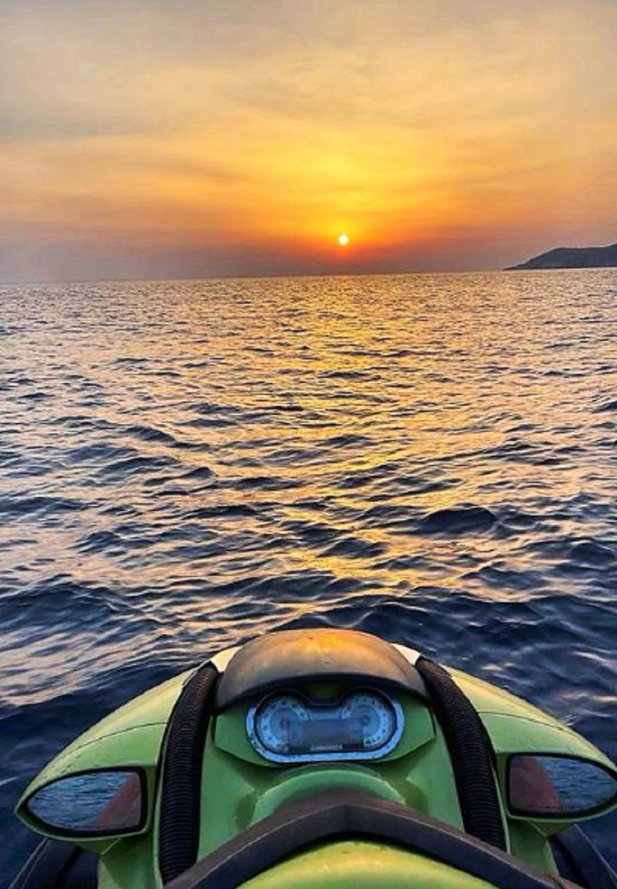 «Άλλη μια μαγική ώρα…. Στιγμή…. Προορισμός…. Τζετ σκι που χρησιμοποιείται ως στήριγμα», έγραψε χαρακτηριστικά στη λεζάντα.