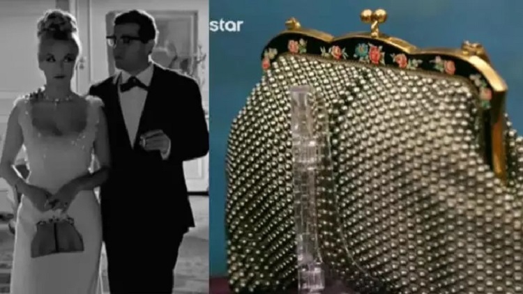 «Αυτό το υπέροχο και σικάτο τσαντάκι το κρατούσε η Αλίκη Βουγιουκλάκη στην ταινία “Μοντέρνα Σταχτοπούτα” το 1965, πηγαίνοντας στην Ιταλία με αυτή την πολύ όμορφη λευκή της τουαλέτα. Είναι custom made το τσαντάκι, δηλαδή έχει ραφτεί αποκλειστικά για αυτή την τουαλέτα», ανέφερε χαρακτηριστικά η παίκτρια.