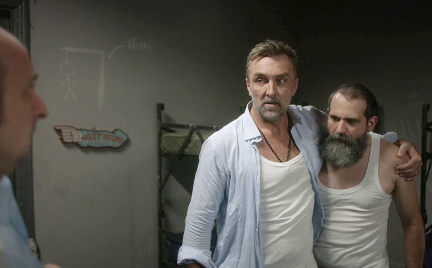 Ο Λάκης Γαβαλάς υποδύεται τον καθηγητή Καλών Τεχνών του σωφρονιστικού ιδρύματος.