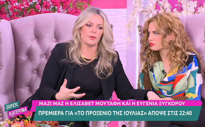 Λίγες ώρες πριν τη μεγάλη πρεμιέρα της νέας δραματικής σειράς «Το προξενιό της Ιουλίας» απόψε στις 22:40, η Ελισάβετ Μουτάφη και η Ευγενία Ξυγκόρου βρέθηκαν σήμερα στην εκπομπή «Super Κατερίνα» και μίλησαν για τους τηλεοπτικούς τους ρόλους, τη Στάσα και την Ιουλία, δηλώνοντας ευτυχισμένες που συμμετέχουν σε αυτή τη δουλειά. Είχαν συνεργαστεί στο παρελθόν στη θεατρική παράσταση «Ρωμαίος και Ιουλιέτα» και δηλώνουν πολύ χαρούμενες για τη φετινή τους συνύπαρξη ως μητέρα και κόρη στη σειρά.