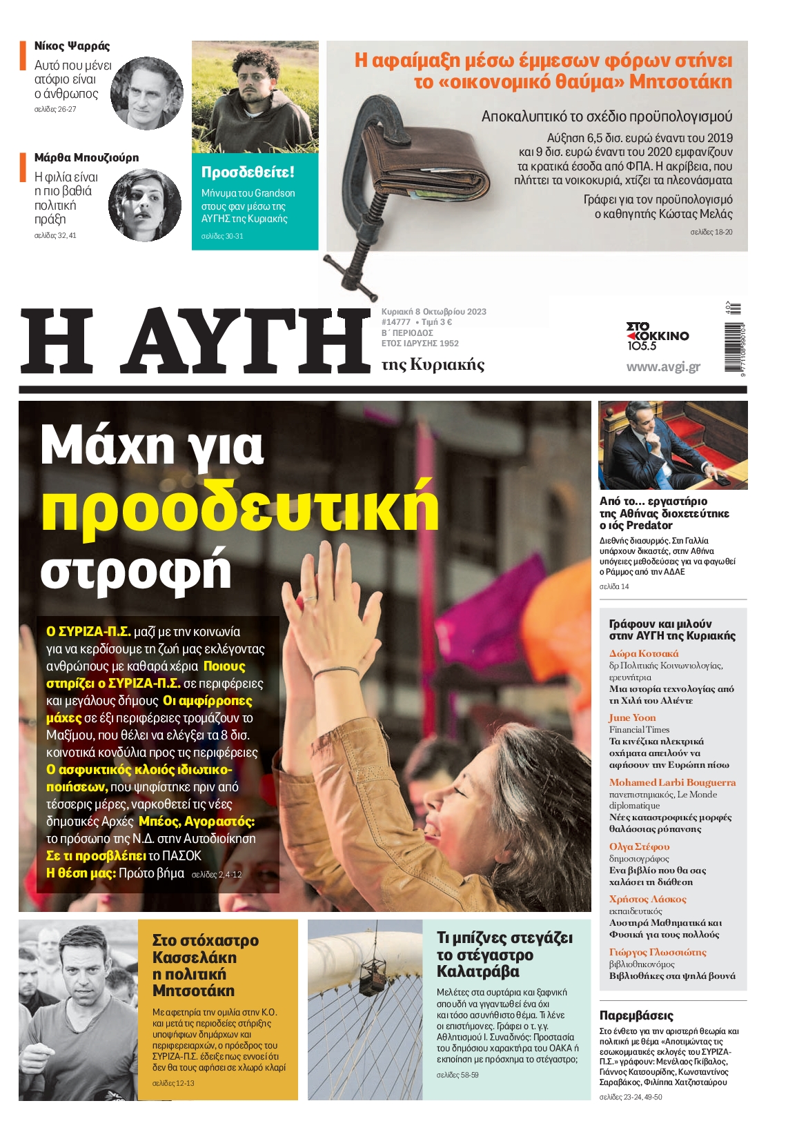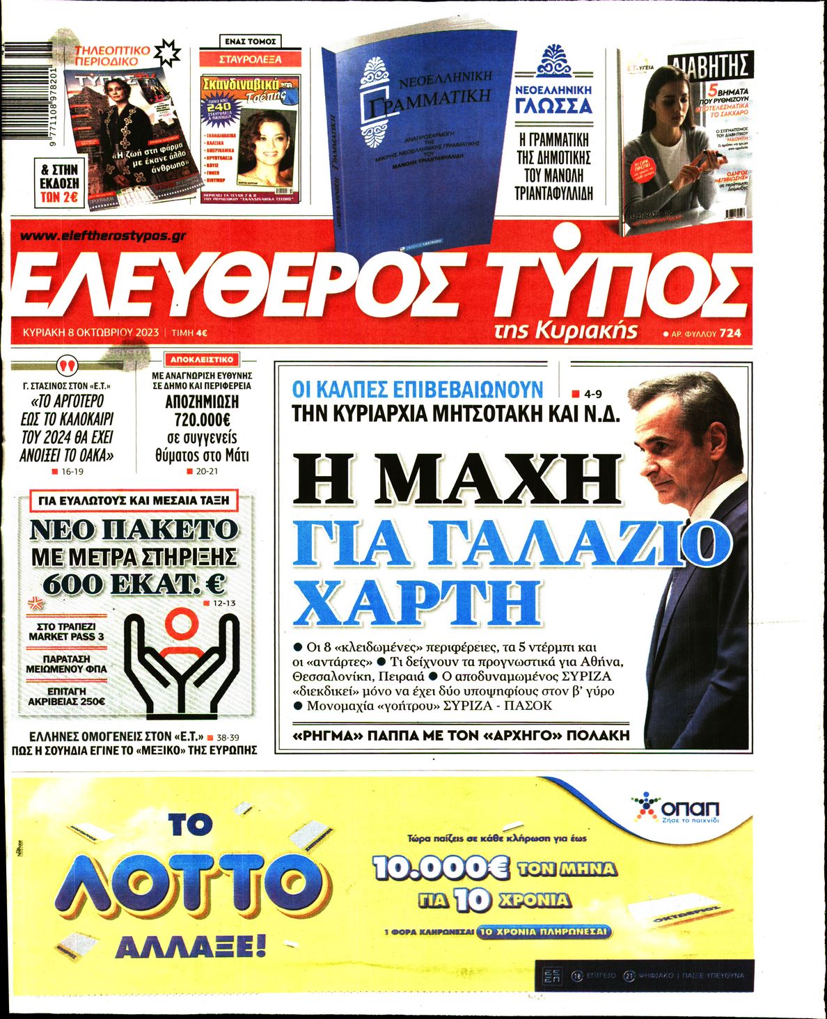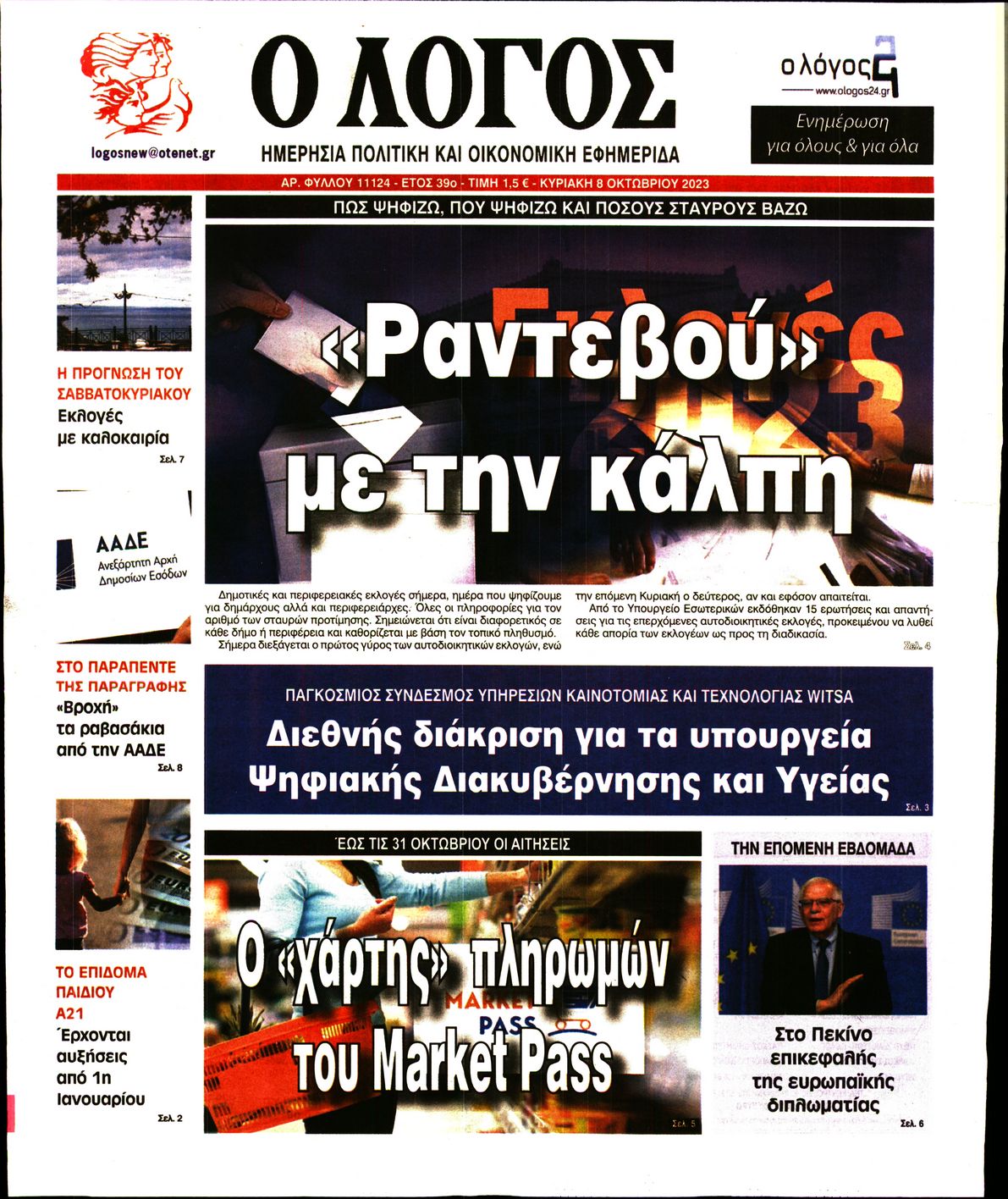 Οι αυτοδιοικητικές εκλογές που θα διεξαχθούν αύριο Κυριακή 8 Οκτωβρίου κυριαρχούν στα πρωτοσέλιδα των κυριακάτικων εφημερίδων.