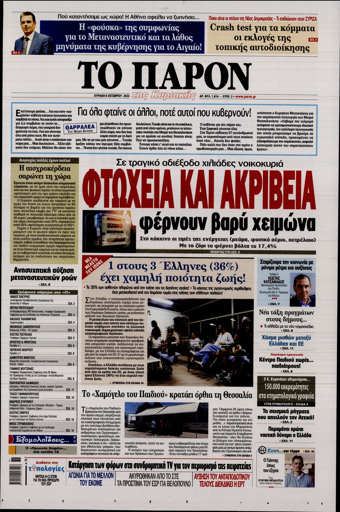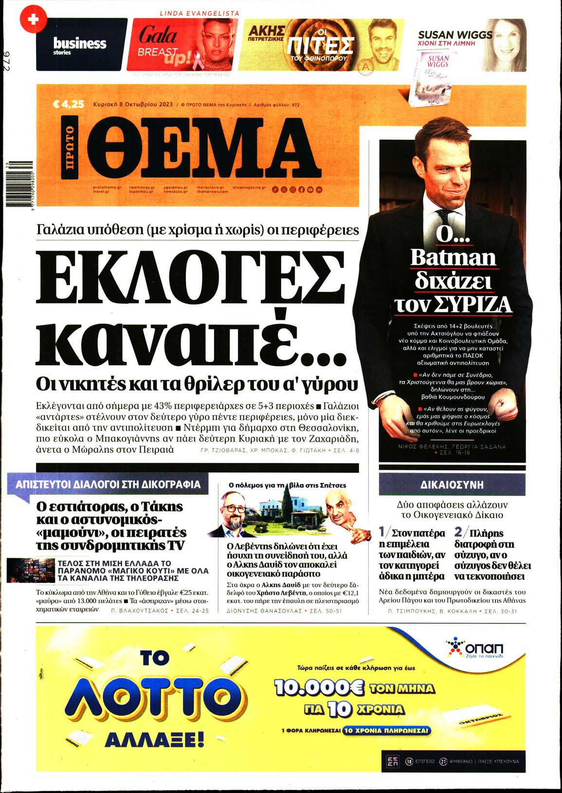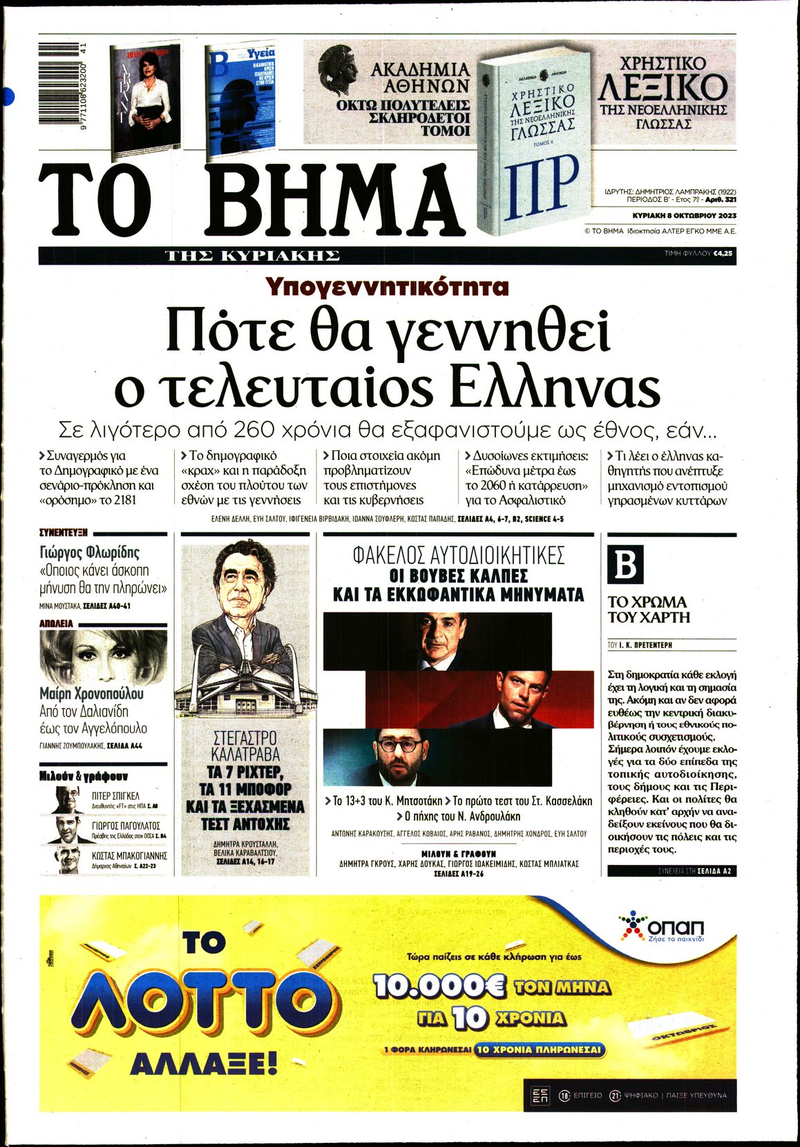 Οι αυτοδιοικητικές εκλογές που θα διεξαχθούν αύριο Κυριακή 8 Οκτωβρίου κυριαρχούν στα πρωτοσέλιδα των κυριακάτικων εφημερίδων.