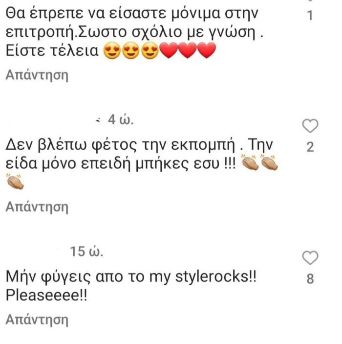 Το κοινό πάντως τάχθηκε υπέρ της Ραμόνας Βλαντή και μάλιστα πολλοί είπαν πως είδαν το My Style Rocks φέτος για πρώτη φορά εξαιτίας της, «απαιτώντας» να γίνει μόνιμη κριτής.