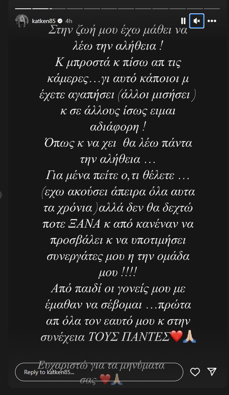 Η Κατερίνα Καινούργιου λίγη ώρα μετά έδωσε τη δική της απάντηση μέσα από τον προσωπικό της λογαριασμό στο Instagram.