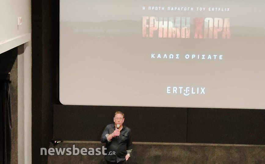 Τόσο ο πρόεδρος της ΕΡΤ, Κωνσταντίνος Ζούλας όσο και ο σκηνοθέτης της σειράς ο οποίος είναι και ο σεναριογράφος της «Έρημης Χώρας» αναφέρθηκαν στο νέο «πείραμα» του ERTFLIX, όπως χαρακτηρίστηκε ενώ μίλησαν και για τη νέα τάση που καταγράφεται παγκοσμίως στην θέαση σειρών.