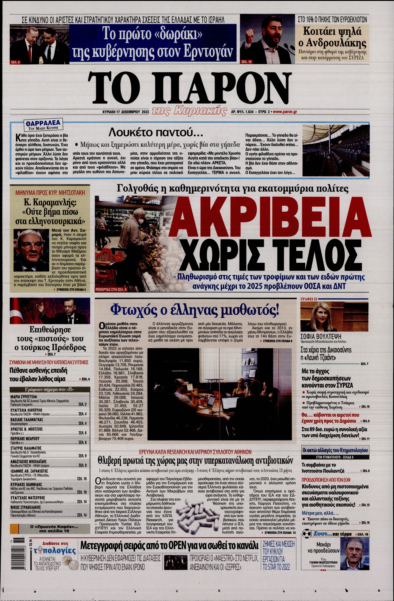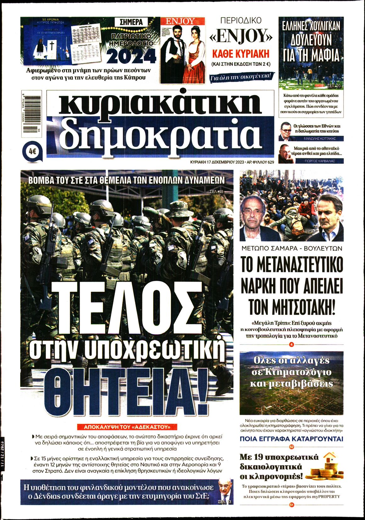 Η οπαδική βία και τα μέτρα για την αντιμετώπισή της και τα νέα τιμολόγια ρεύματος ξεχωρίζουν μεταξύ άλλων θεμάτων στα πρωτοσέλιδα των κυριακάτικων εφημερίδων.