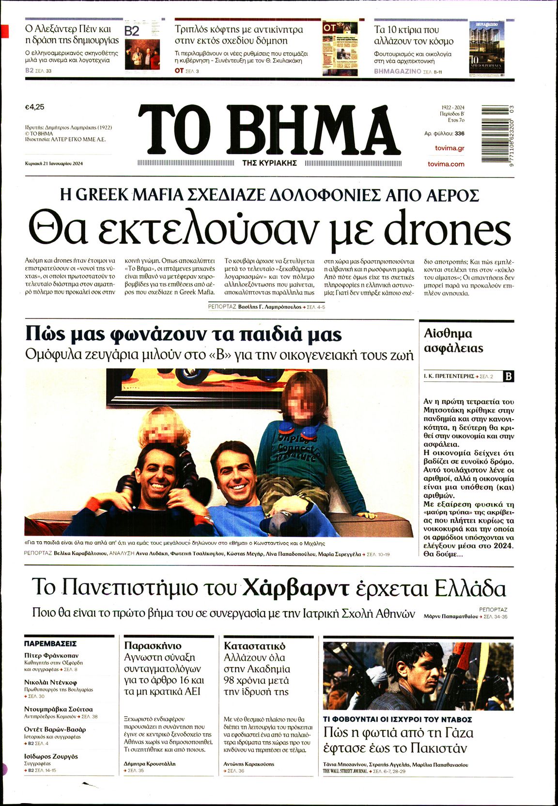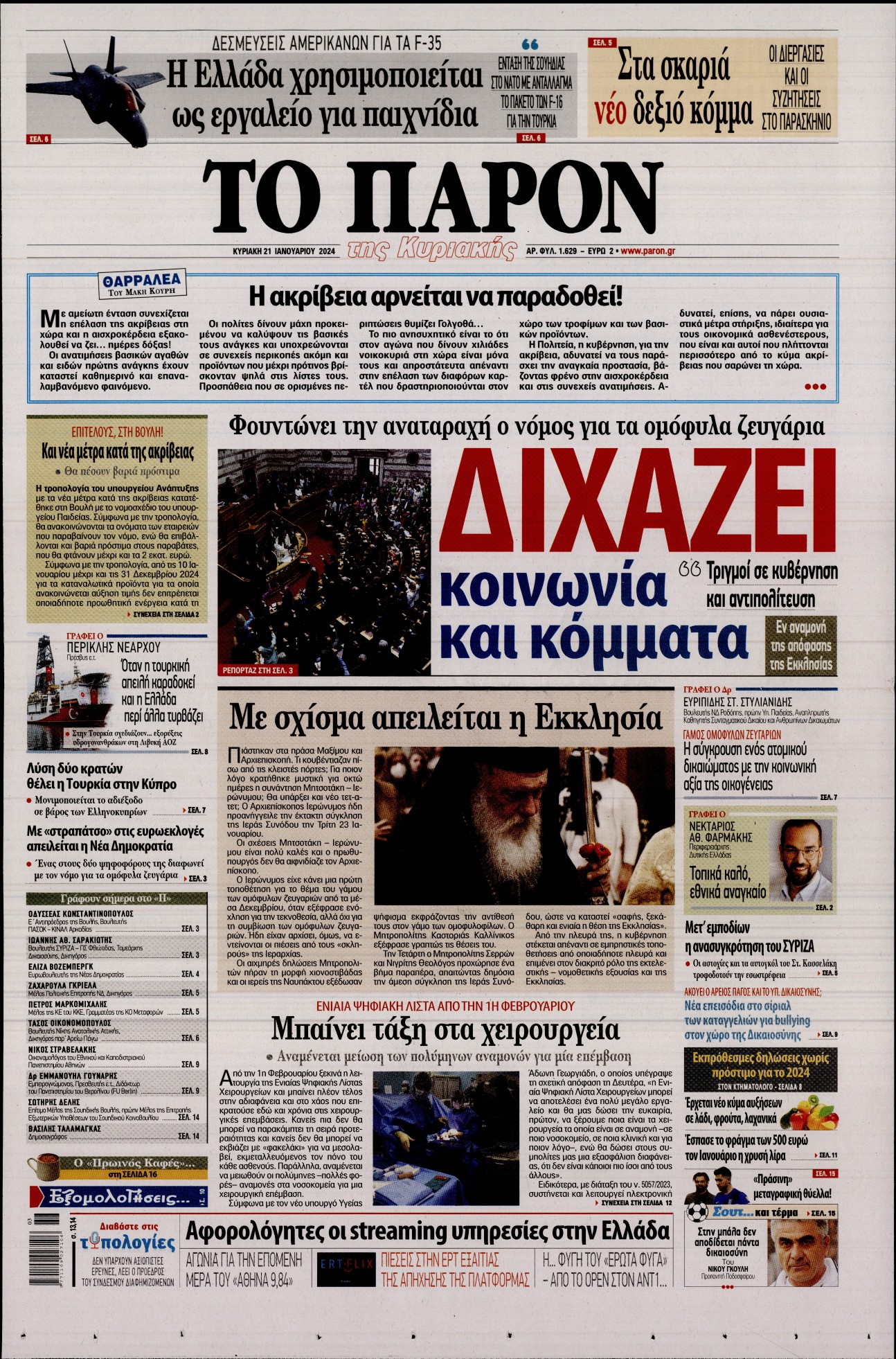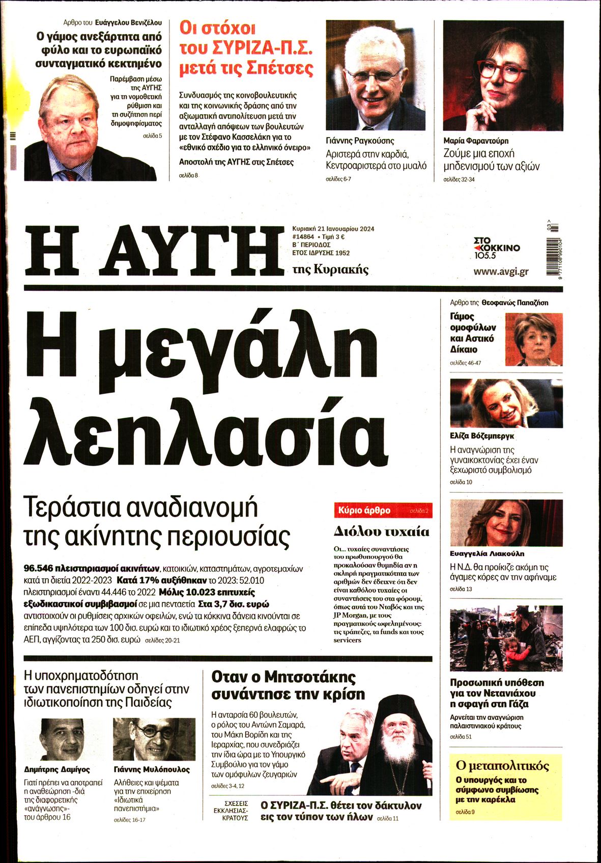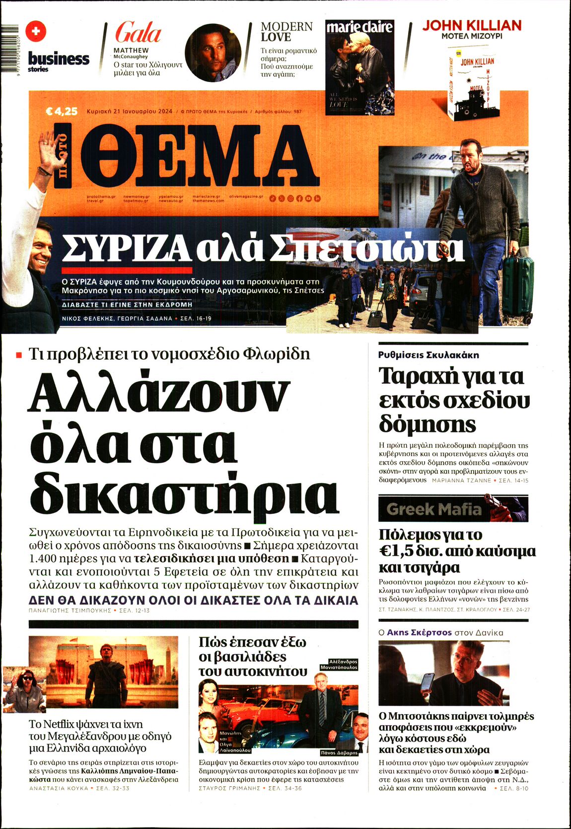 Το νομοσχέδιο για τα ομόφυλα ζευγάρια, το τριήμερο του ΣΥΡΙΖΑ στις Σπέτσες και η υπόθεση της Greek Mafia ξεχωρίζουν μεταξύ άλλων θεμάτων στα πρωτοσέλιδα των κυριακάτικων εφημερίδων.