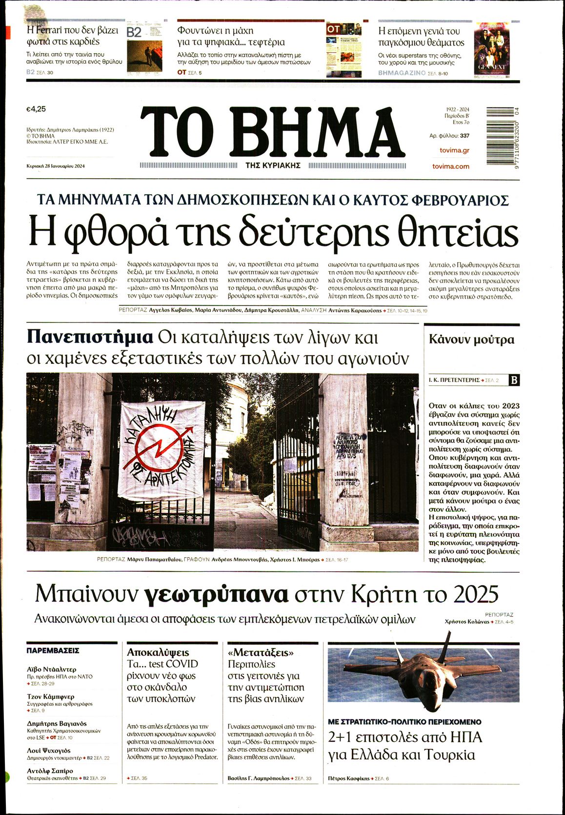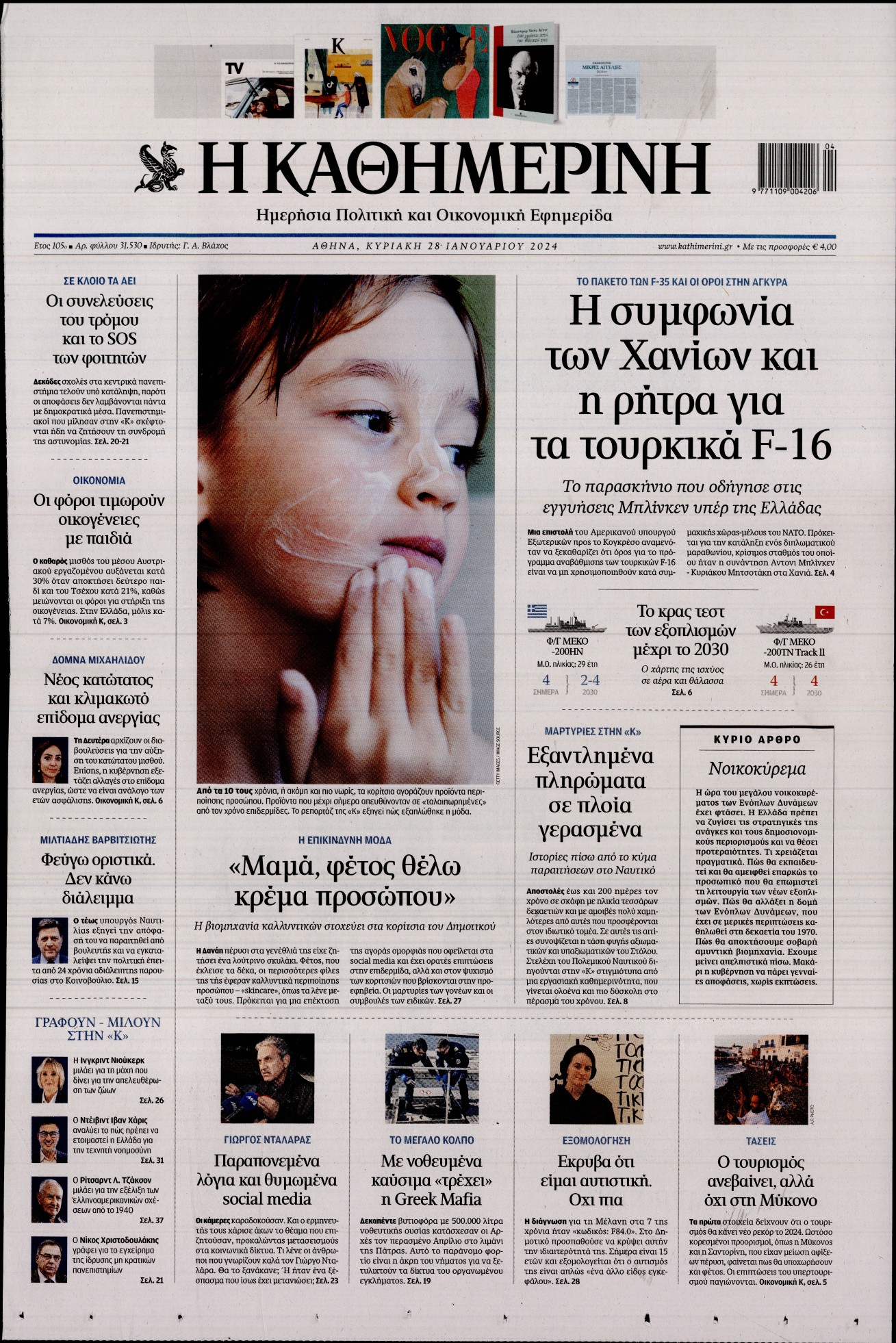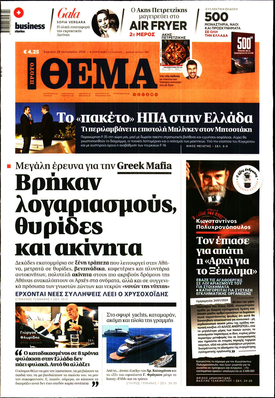 Η συμφωνία της Ελλάδας με τις ΗΠΑ για τα F-35, η δολοφονία του 31χρονου Μπάμπη στο Μεσολόγγι, αλλά και οι εξελίξεις στην υπόθεση της Greek Mafia ξεχωρίζουν μεταξύ άλλων θεμάτων στα πρωτοσέλιδα των κυριακάτικων εφημερίδων.