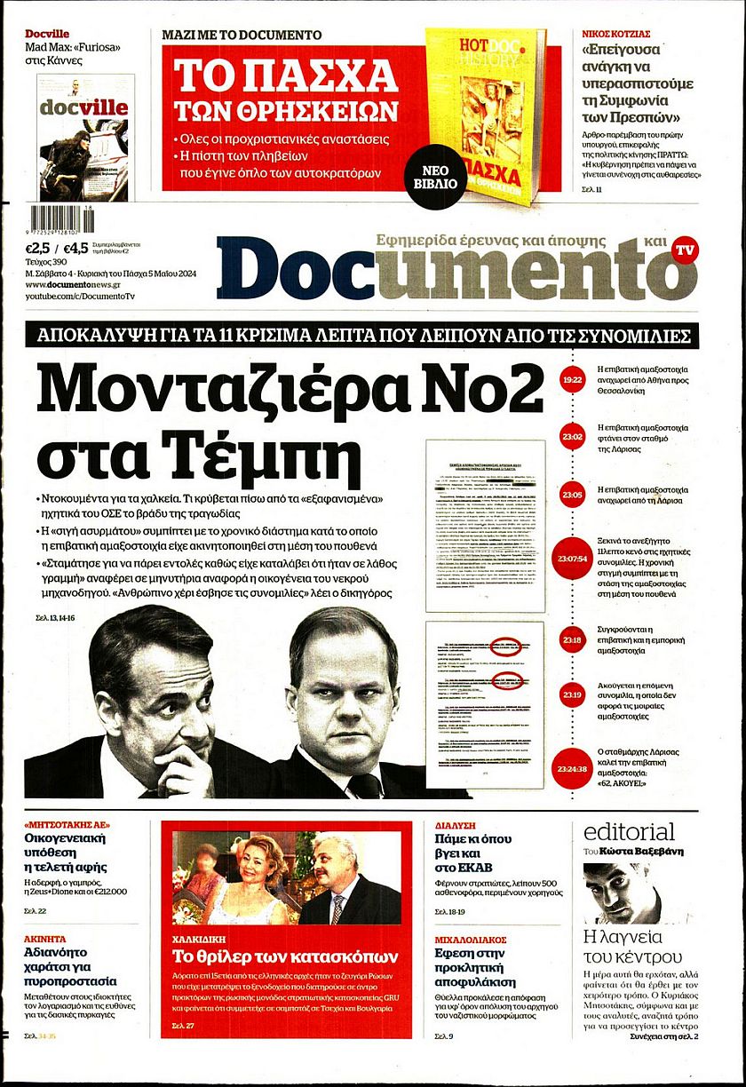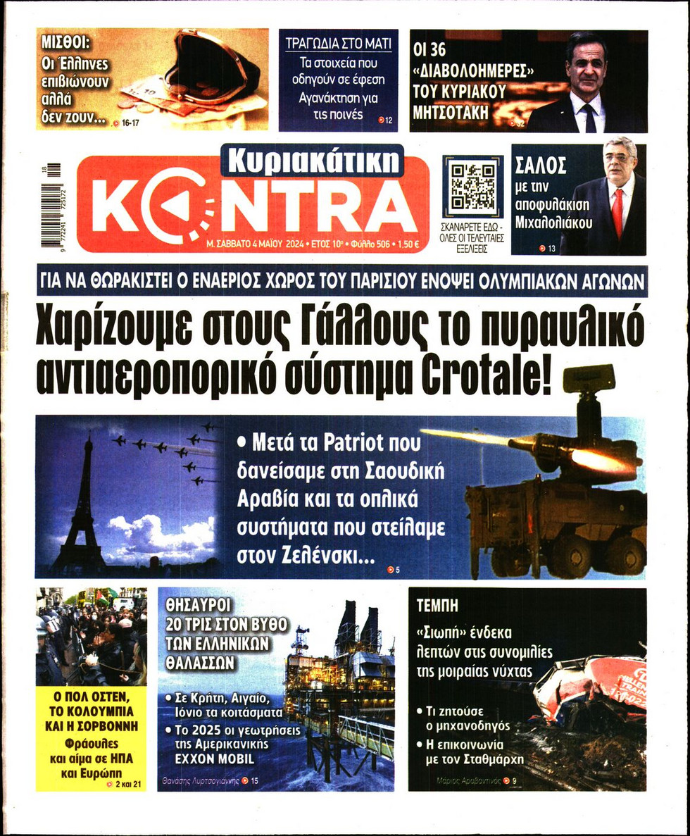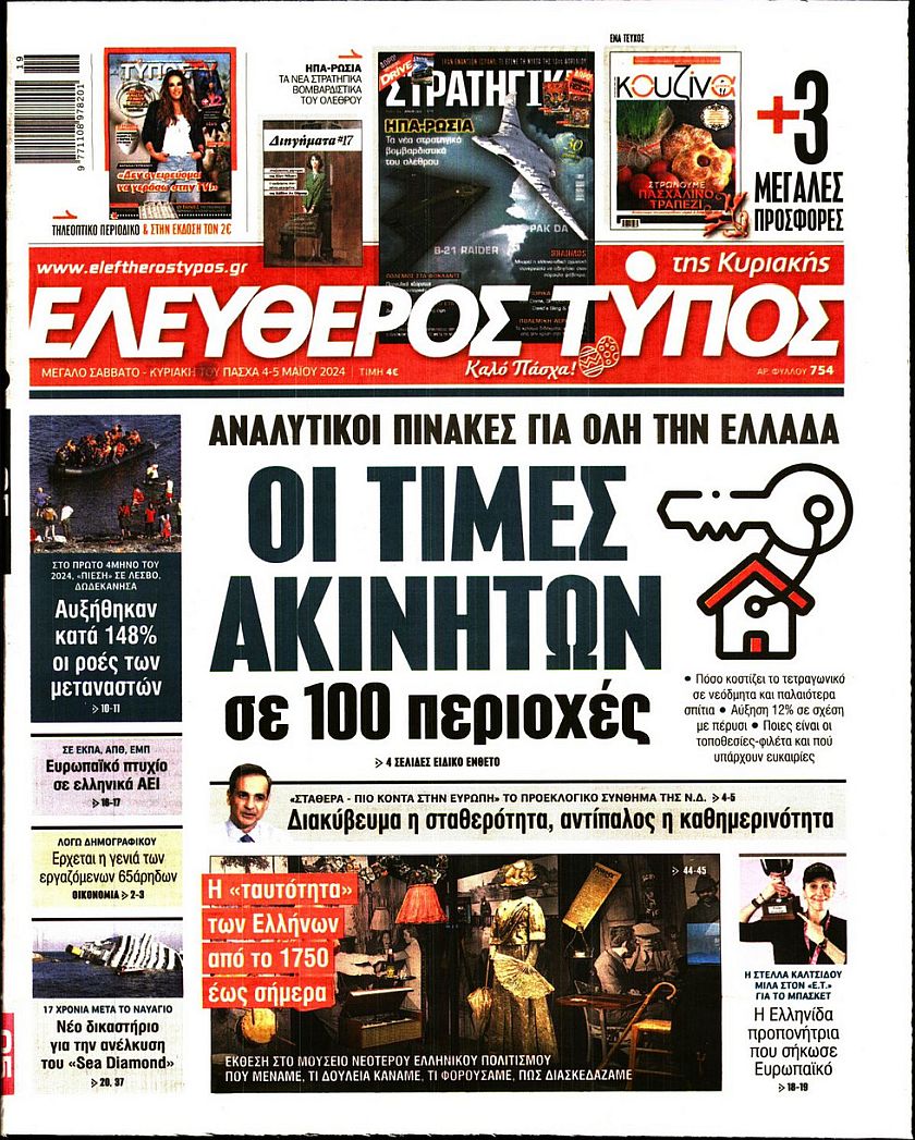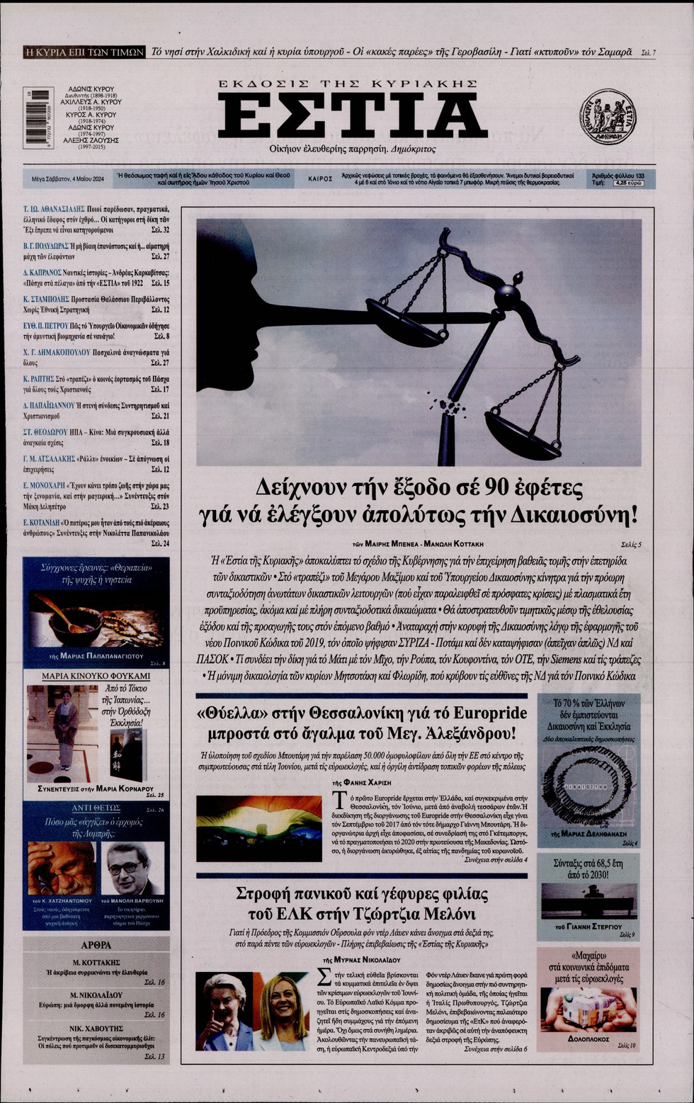 Ο ένας μήνας που έχει απομείνει μέχρι τις ευρωεκλογές, οι τιμές των ακινήτων σε όλη την Ελλάδα και οι ταραχές που έχουν ξεσπάσει στα αμερικανικά πανεπιστήμια εξαιτάς του πολέμου του Ισραήλ με τη Χαμάς ξεχωρίζουν μεταξύ άλλων στα πρωτοσέλιδα των κυριακάτικων εφημερίδων.