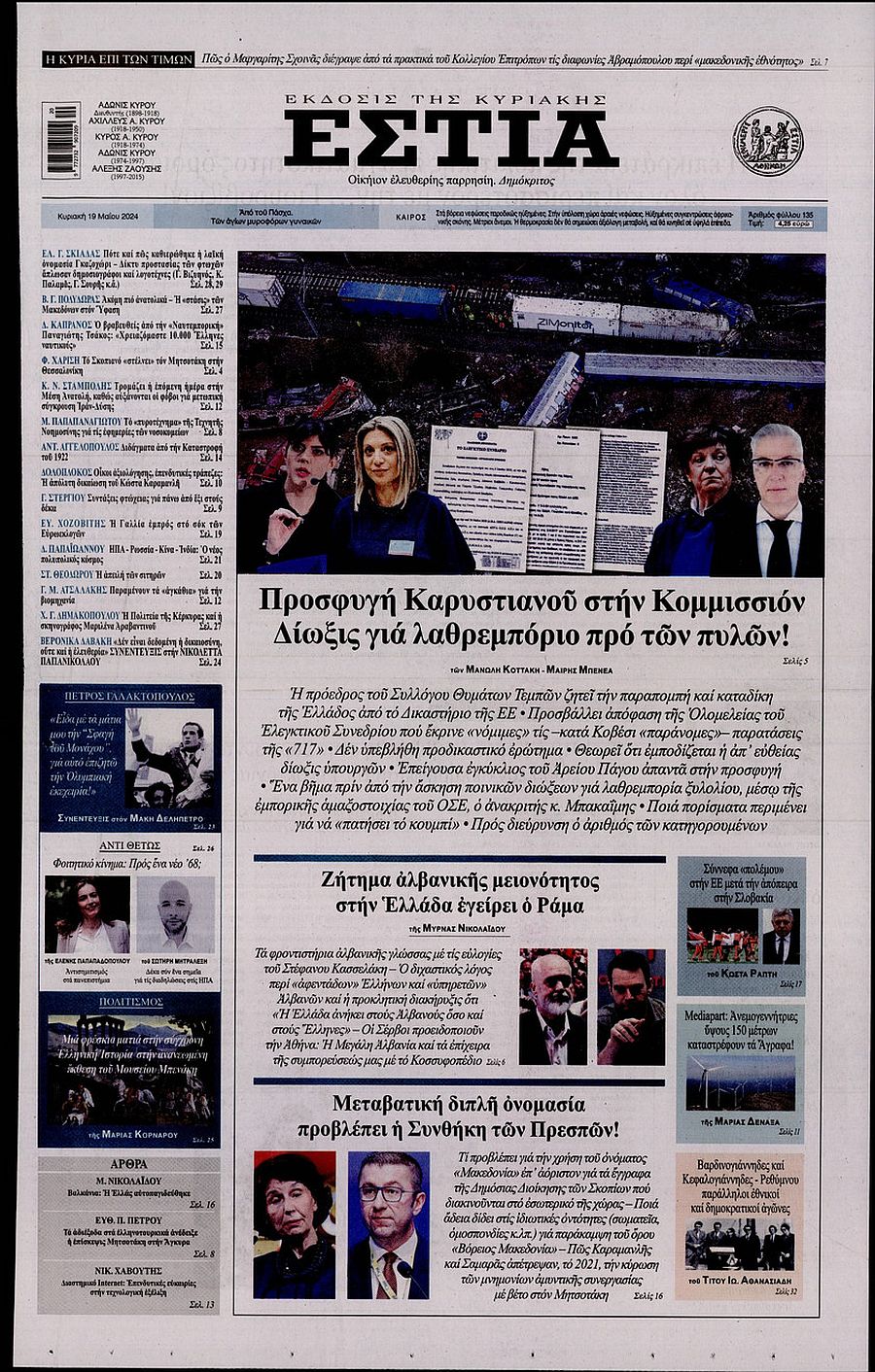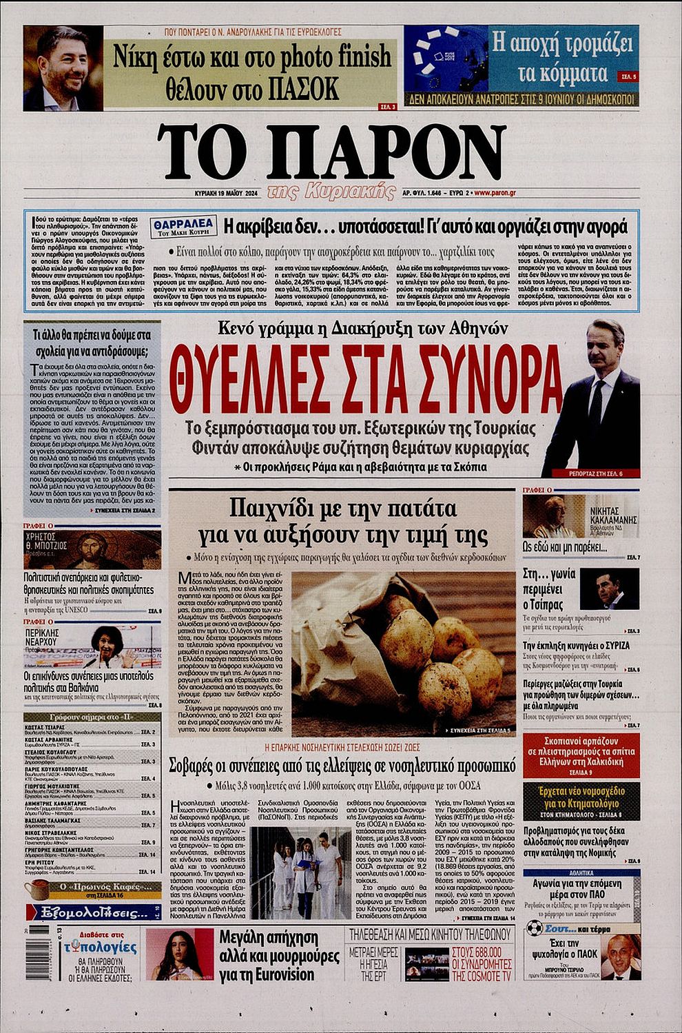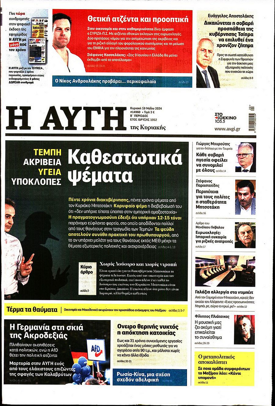 Η ανασφάλεια στην Ευρώπη μετά την απόπειρα δολοφονίας του Σλοβάκου πρωθυπουργού, η επιστολή του Κυριάκου Μητσοτάκη στην Ούρσουλα φον ντερ Λάιεν για την αισχροκέρδεια των πολυεθνικών, οι καταγγελίες για σωρεία αυθαιρεσιών στις παραλίες και οι ευρωεκλογές της 9ης Ιουνίου ξεχωρίζουν στα πρωτοσέλιδα των κυριακάτικων εφημερίδων.