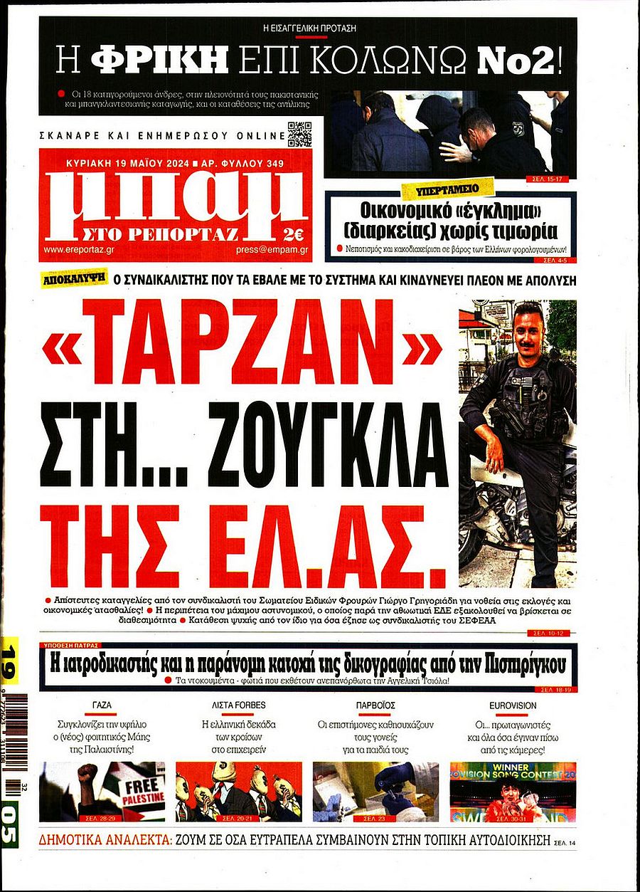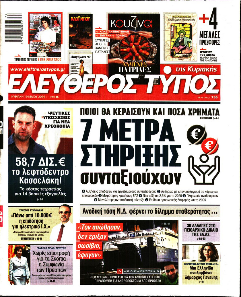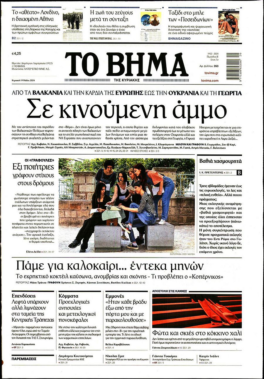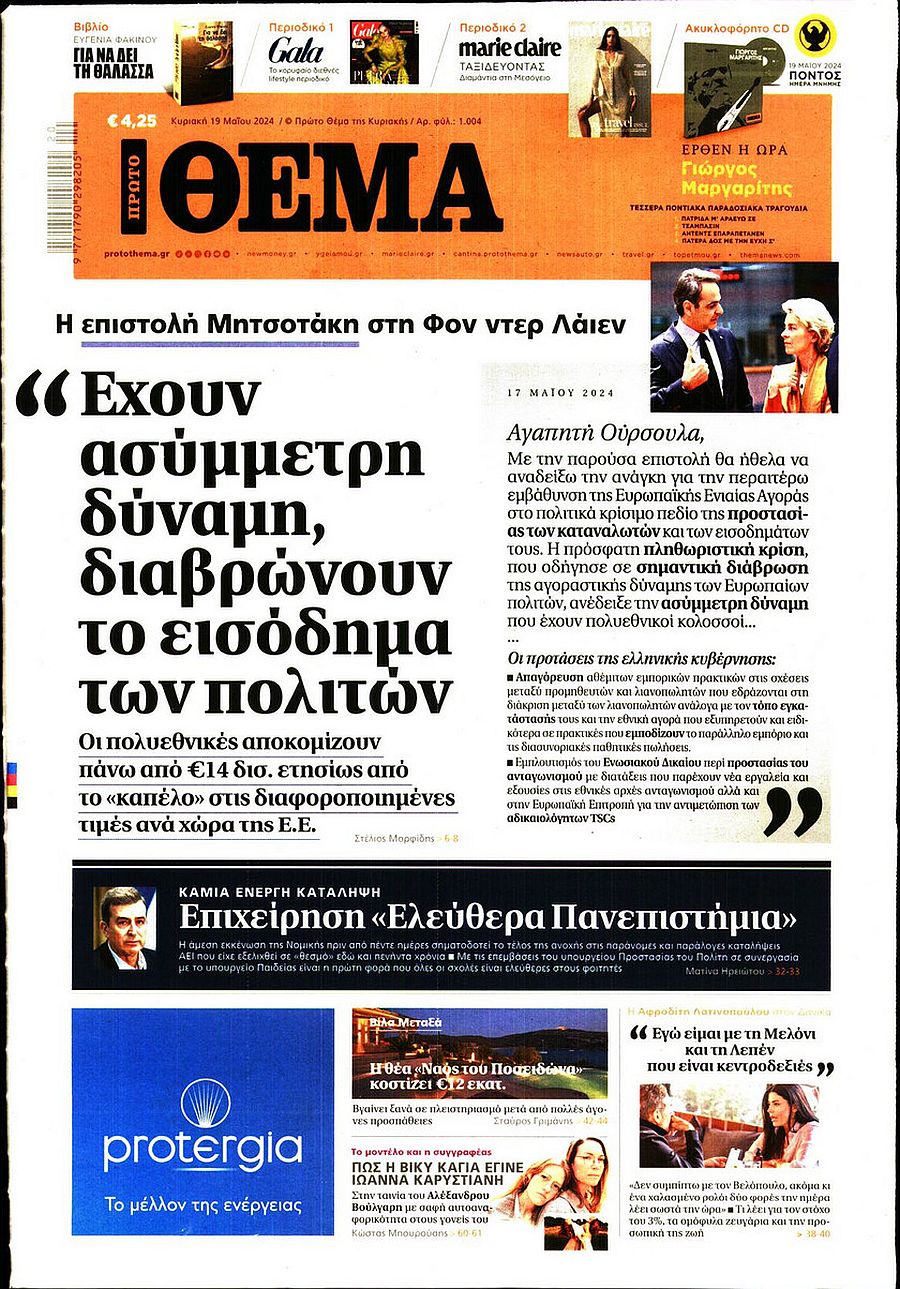 Η ανασφάλεια στην Ευρώπη μετά την απόπειρα δολοφονίας του Σλοβάκου πρωθυπουργού, η επιστολή του Κυριάκου Μητσοτάκη στην Ούρσουλα φον ντερ Λάιεν για την αισχροκέρδεια των πολυεθνικών, οι καταγγελίες για σωρεία αυθαιρεσιών στις παραλίες και οι ευρωεκλογές της 9ης Ιουνίου ξεχωρίζουν στα πρωτοσέλιδα των κυριακάτικων εφημερίδων.