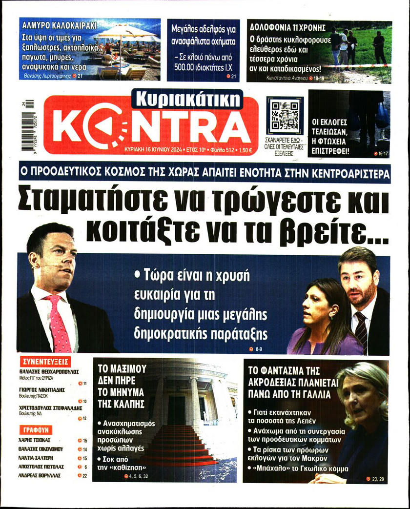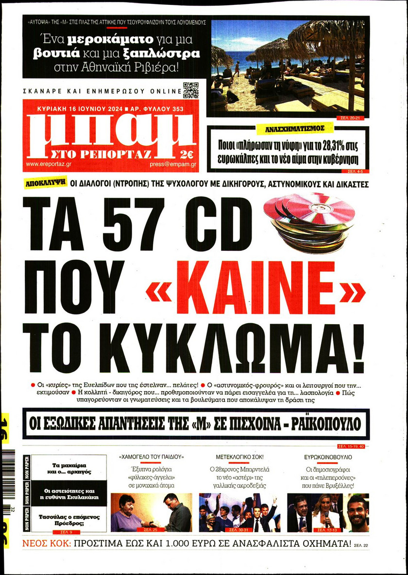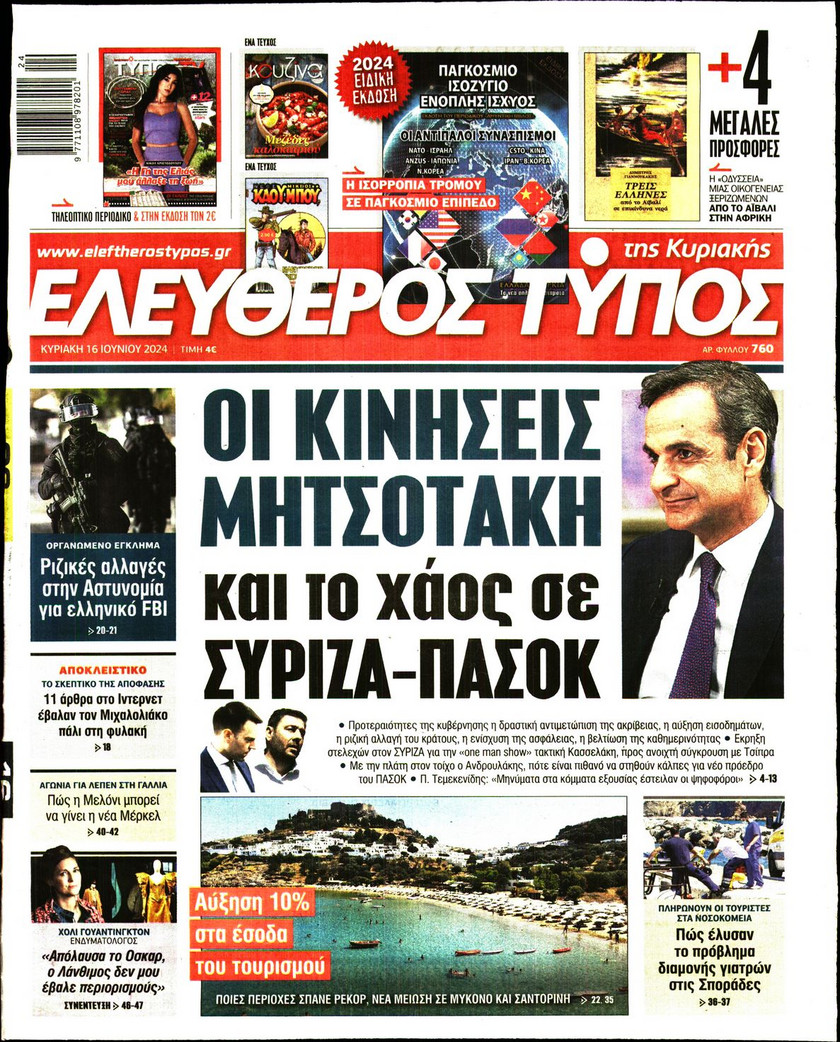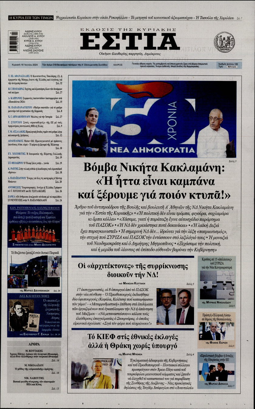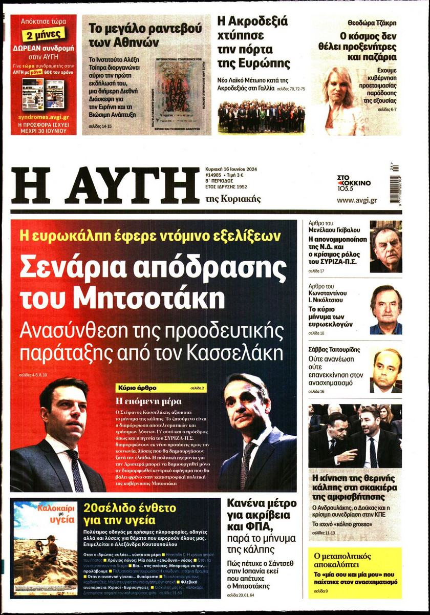 Η αλλαγή του πολιτικού σκηνικού στην Ελλάδα από το αποτέλεσμα των ευρωεκλογών, οι εξελίξεις στην Κεντροαριστερά, τα αναμενόμενα έσοδα από τον τουρισμό και οι αλλαγές στο σύστημα φορολόγησης που εξετάζει η κυβέρνηση ξεχωρίζουν στα πρωτοσέλιδα των κυριακάτικων εφημερίδων.