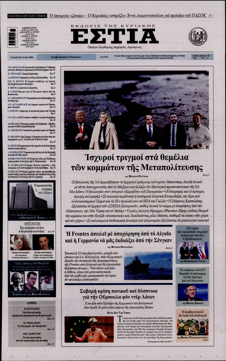 Οι εσωκομματικές εξελίξεις στον ΣΥΡΙΖΑ, οι διαδικασίες για ανάδειξη νέου αρχηγού στο ΠΑΣΟΚ, οι εκλογές στη Γαλλία και το πρώτο ντιμπέιτ Μπάιντεν-Τραμπ για την προεδρία της Αμερικής ξεχωρίζουν στα πρωτοσέλιδα των κυριακάτικων εφημερίδων.