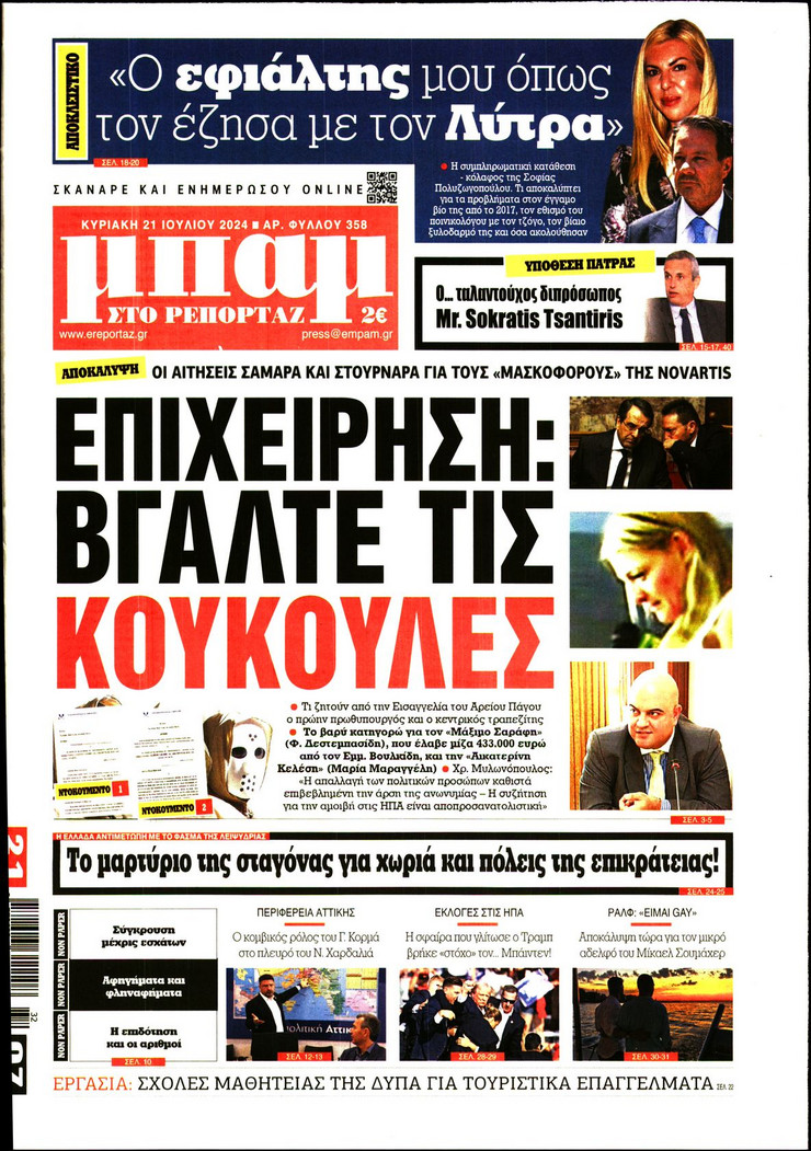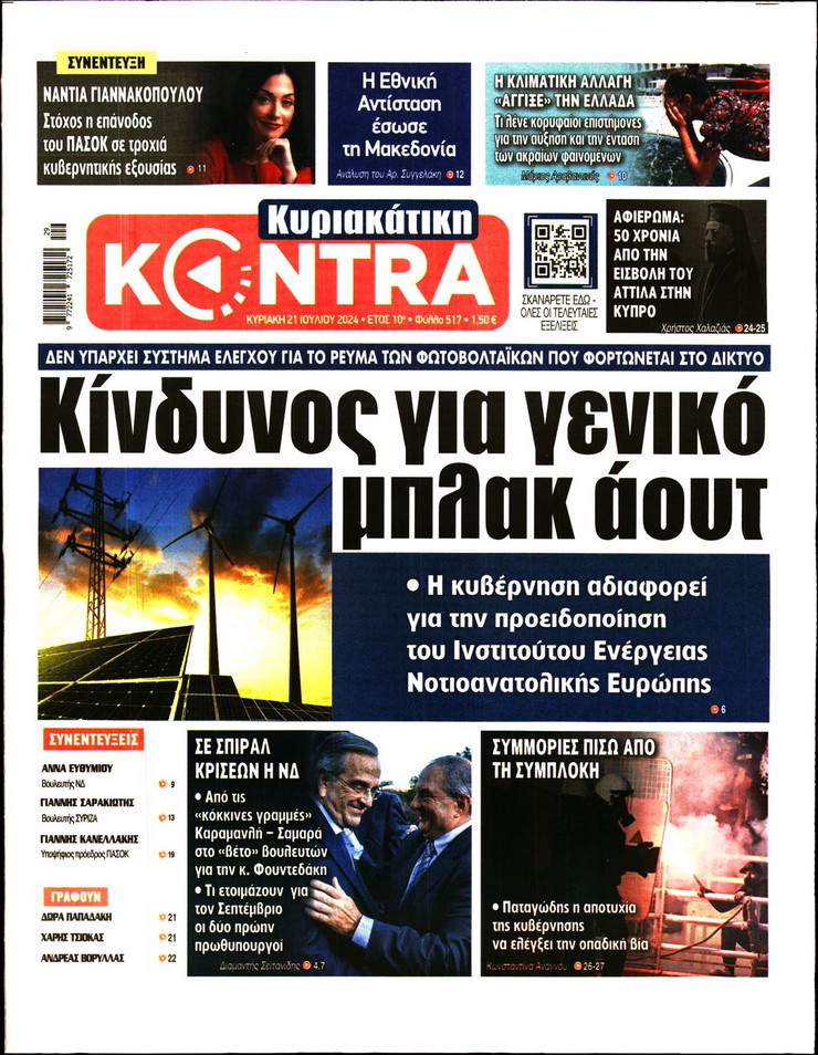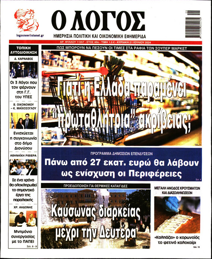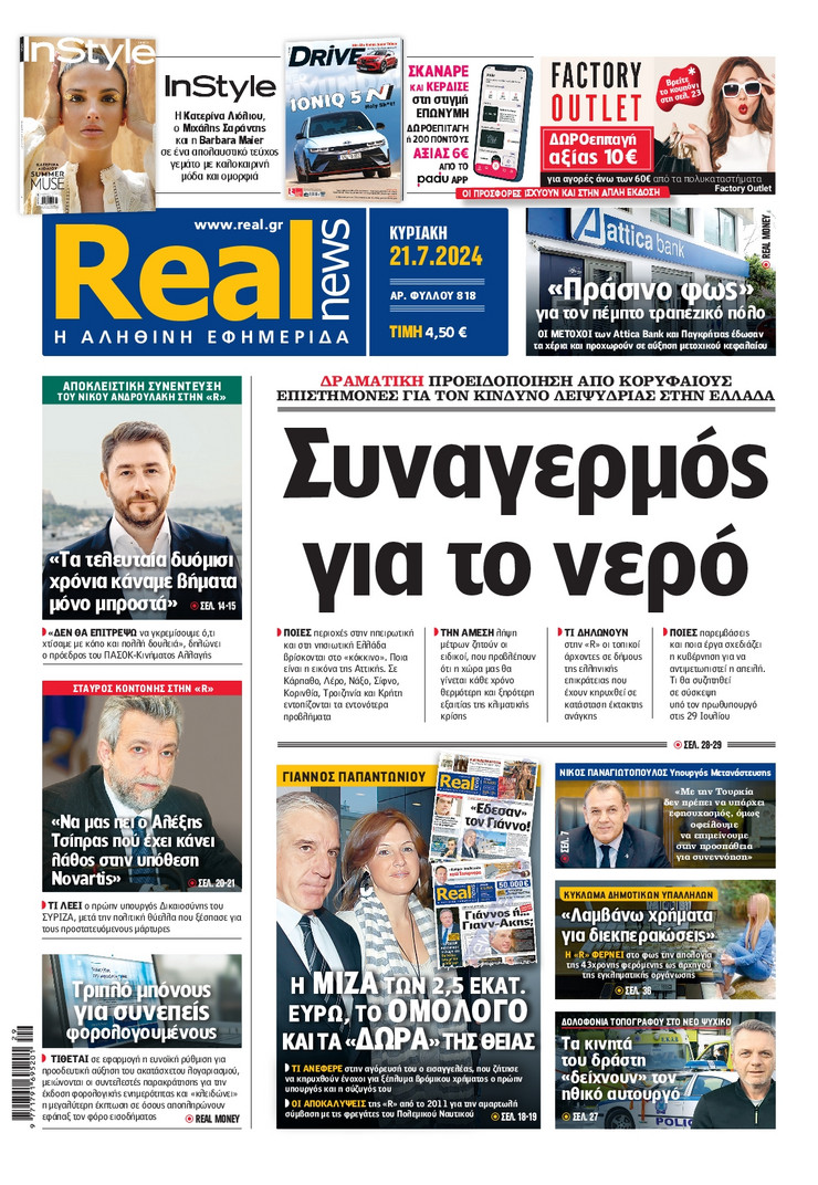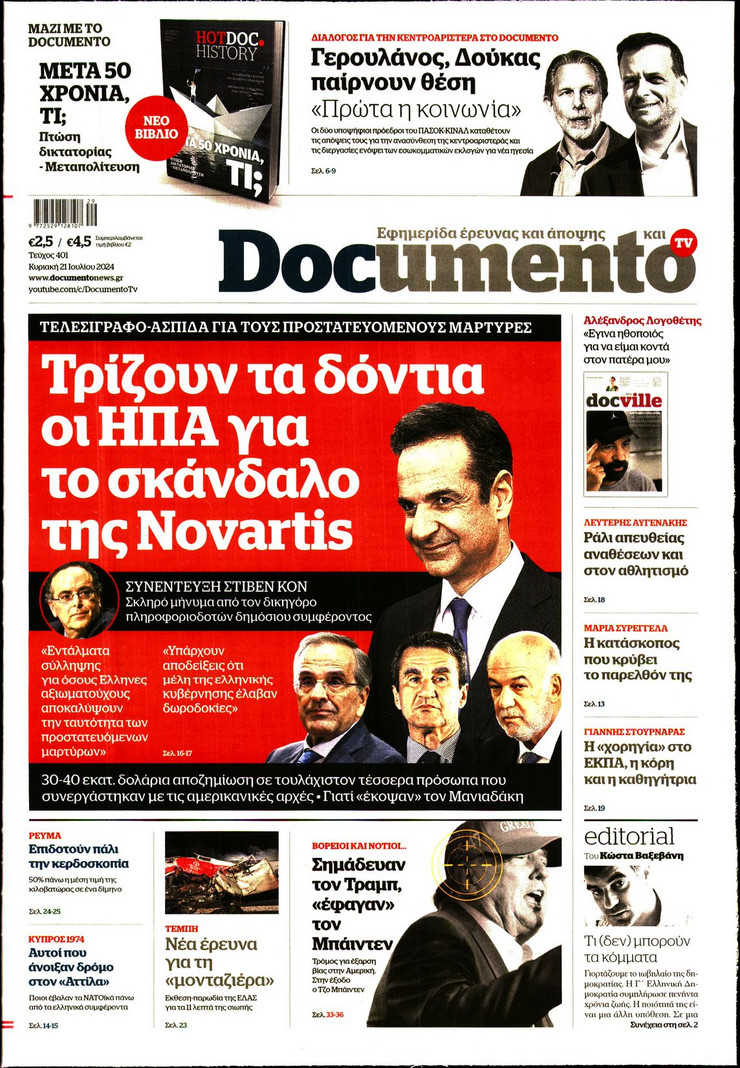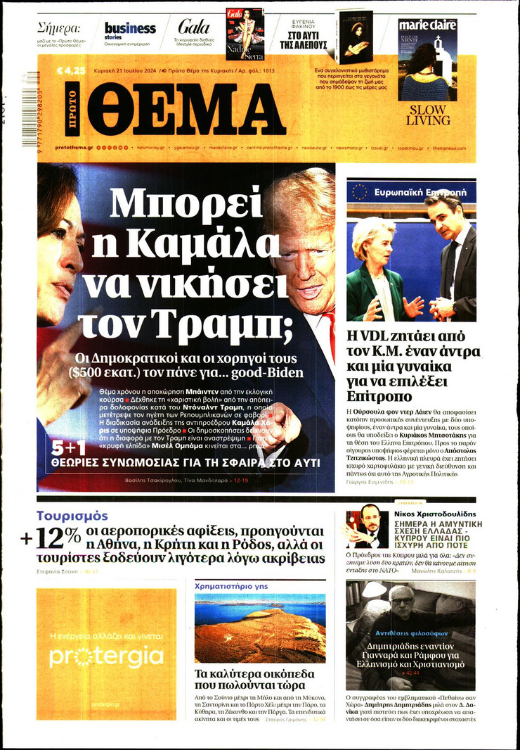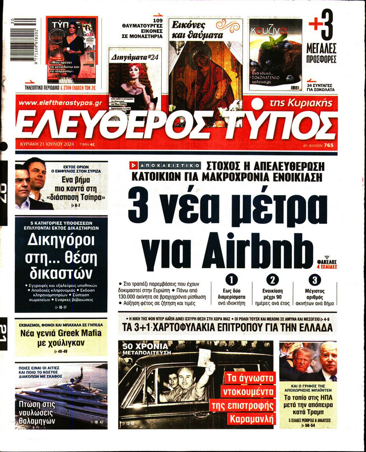Τα 50 χρόνια που συμπληρώθηκαν από την αποκατάσταση της Δημοκρατίας στην Ελλάδα, οι δραματικές προειδοποιήσεις των επιστημόνων για τον κίνδυνο λειψυδρίας στην Ελλάδα, οι πιθανότητες αντικατάστασης του Τζο Μπάιντεν για την υποφηφιότητα της προεδρίας των ΗΠΑ και η αύξηση των τουριστών στην Ελλάδα ξεχωρίζουν στα πρωτοσέλιδα των κυριακάτικων εφημερίδων.