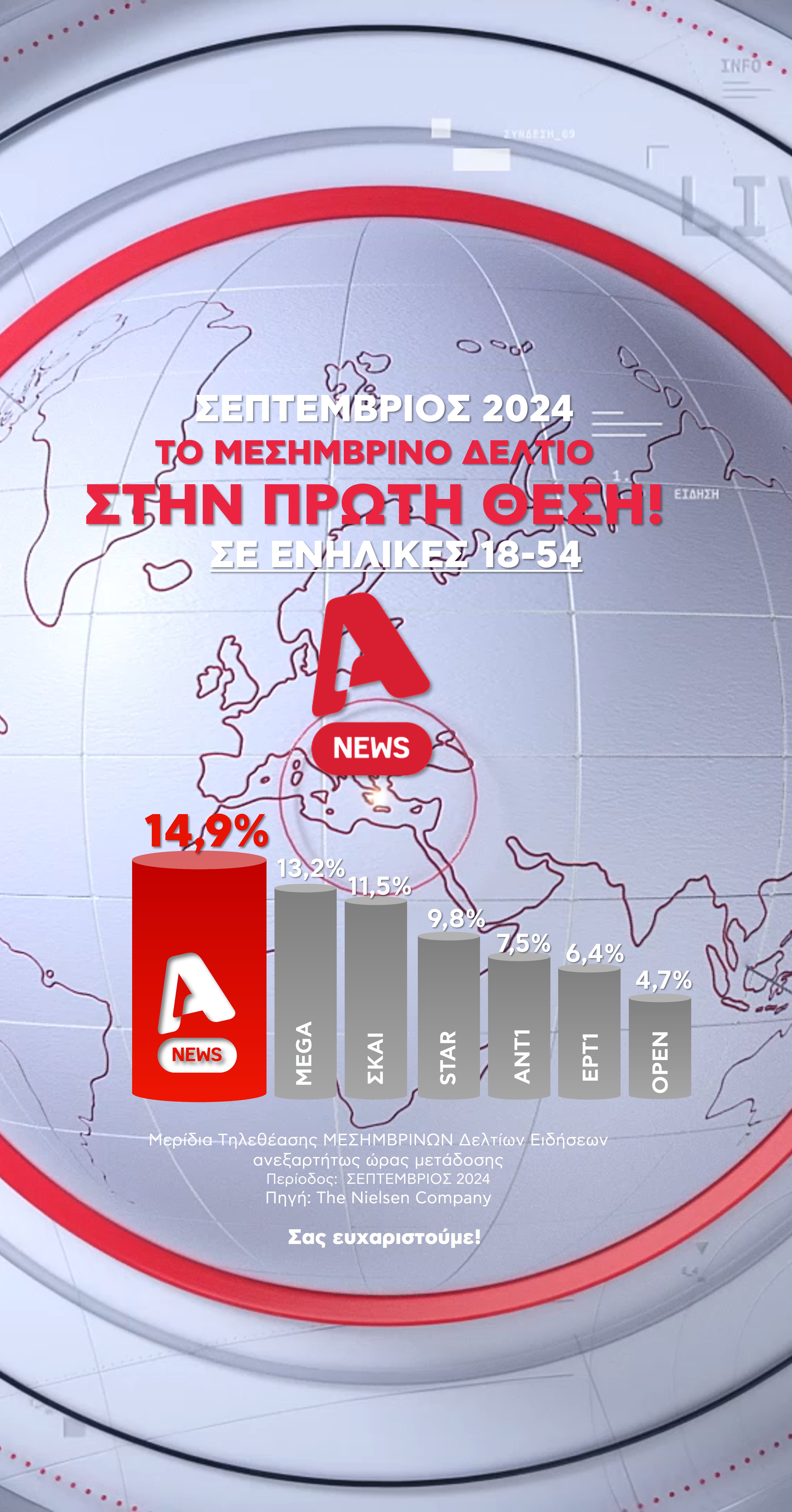 Τον Alpha επιλέγουν οι τηλεθεατές για την ενημέρωσή τους κάθε μεσημέρι, όπως δείχνουν τα στοιχεία τηλεθέασης.