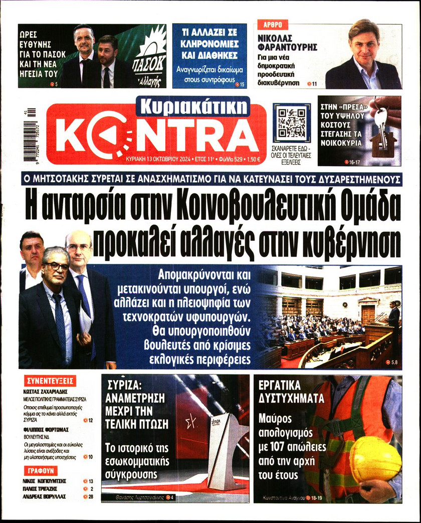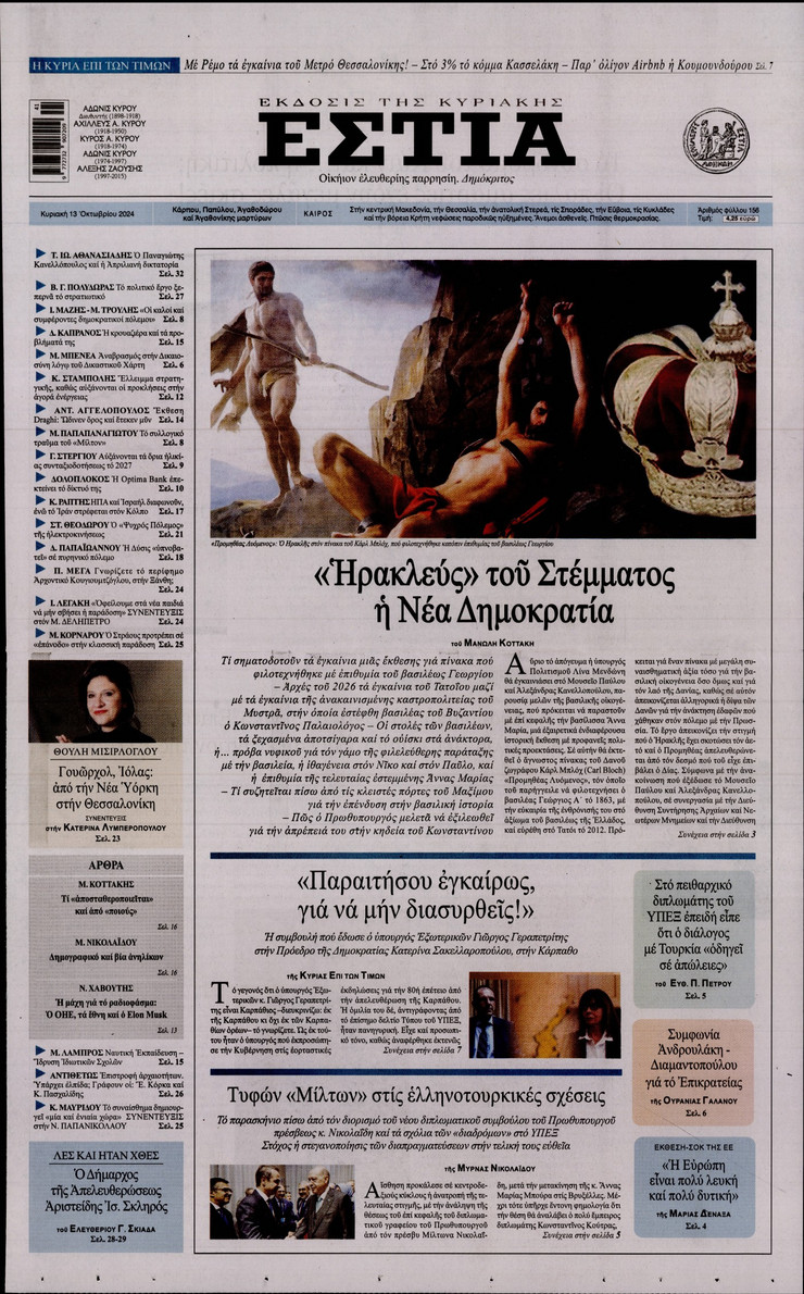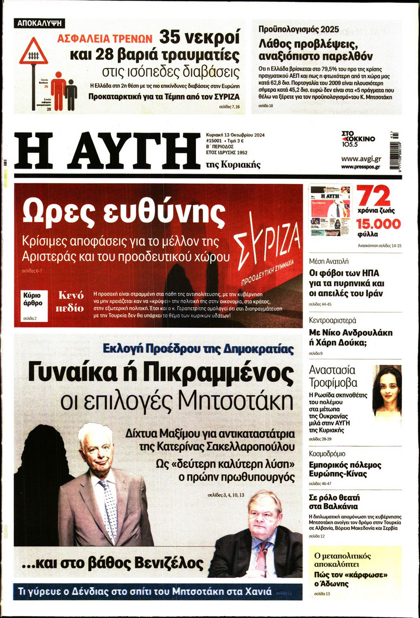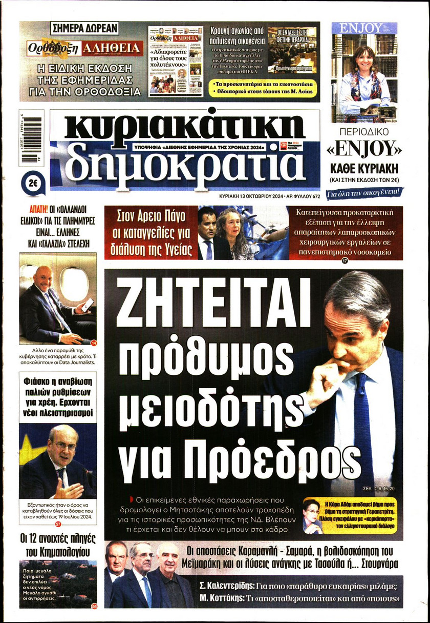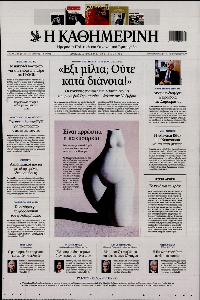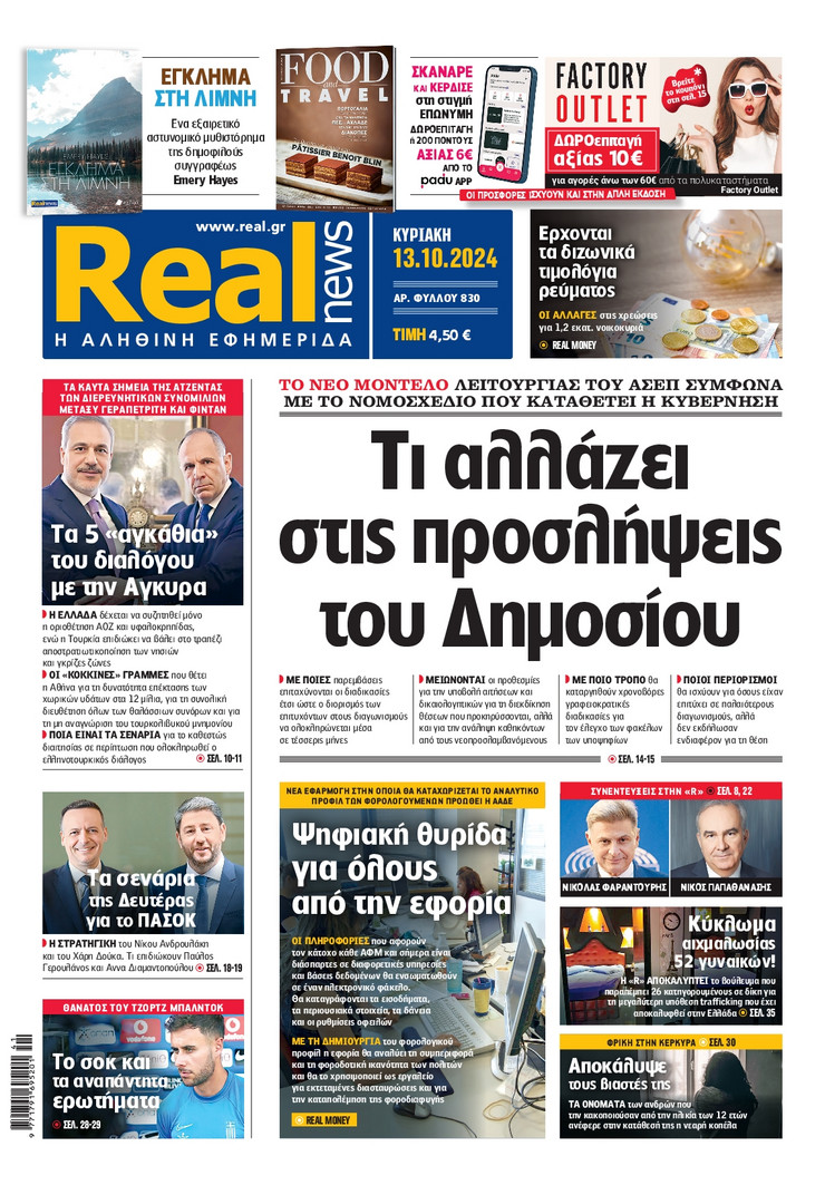 Το νέο μοντέλο λειτουργίας του ΑΣΕΠ και όλα όσα αλλάζουν στις προσλήψεις του Δημοσίου, οι κόκκινες γραμμές της Αθήνας ενόψει του ραντεβού των υπουργών Εξωτερικών Ελλάδας και Τουρκίας το Νοέμβριο, η μεγάλη «μάχη» Ανδρουλάκη – Δούκα για την ηγεσία του ΠΑΣΟΚ και οι νέες ρυθμίσεςι που φέρνει το Κτηματολόγιο ξεχωρίζουν στα πρωτοσέλιδα των κυριακάτικων εφημερίδων.