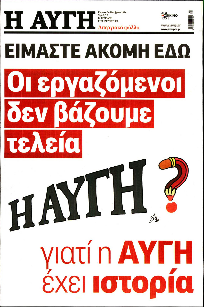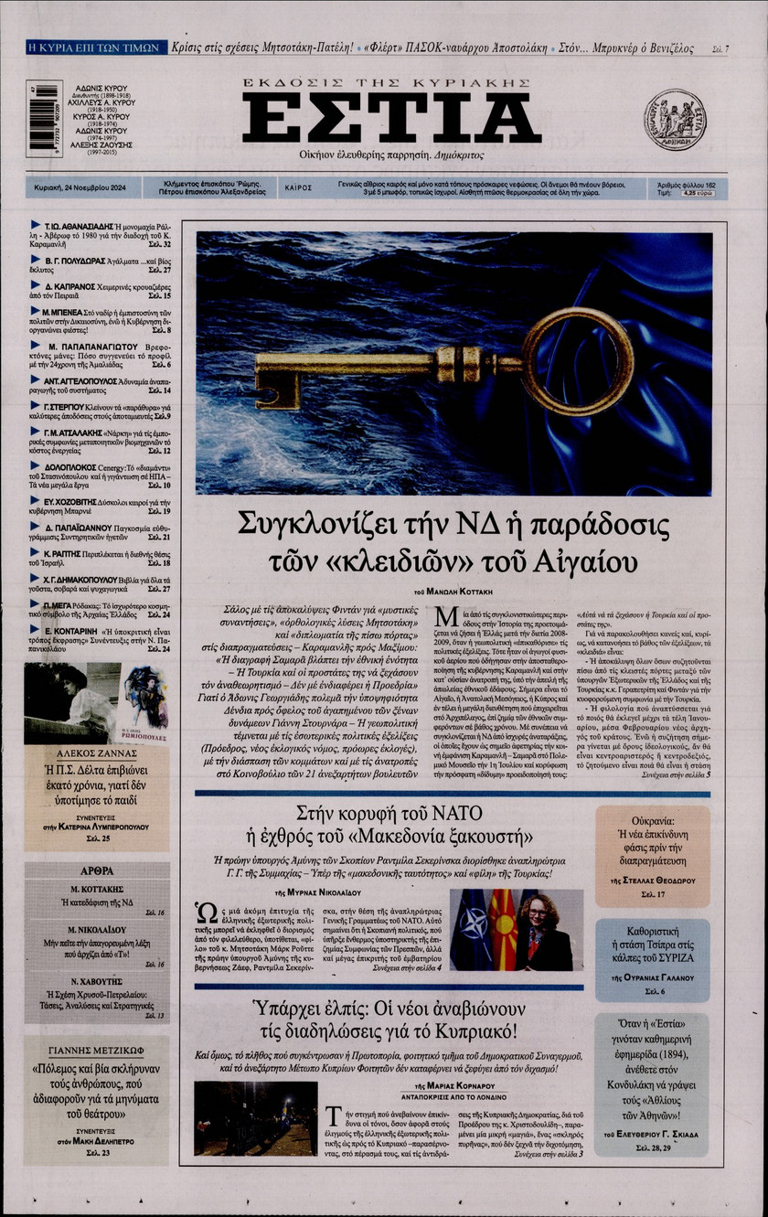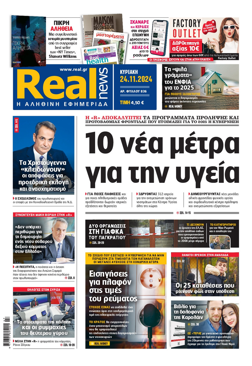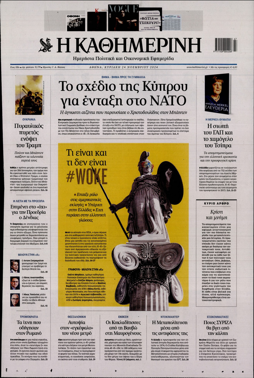 Οι φόβοι για παγκόσμια σύρραξη μετά και τις τελευταίες πυρηνικές απειλές του Βλαντίμιρ Πούτιν, τα 10 νέα μέτρα για την υγεία που που ετοιμάζει η κυβέρνηση για το 2025, η αλλαγή-σταθμός στον ποινικό κώδικα με τη ρύθμιση του υπουργού Δικαιοσύνης Γιώργου Φλωρίδη που βάζει φρένο στις αποφυλακίσεις και το διήμερο της Αριστεράς και το νέο κόμμα Κασσελάκη και την εκλογή νέου αρχηγού στον ΣΥΡΙΖΑ-ΠΣ ξεχωρίζουν στα πρωτοσέλιδα των κυριακάτικων εφημερίδων.