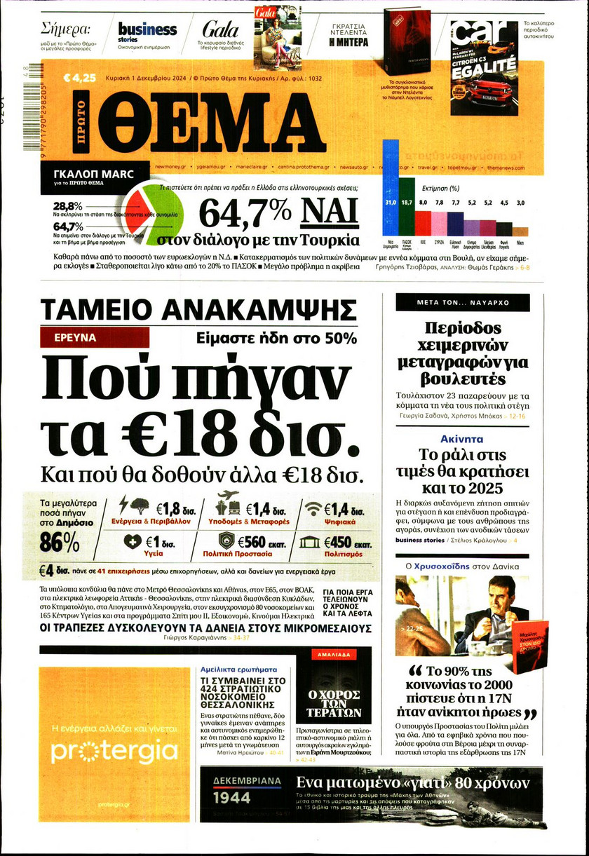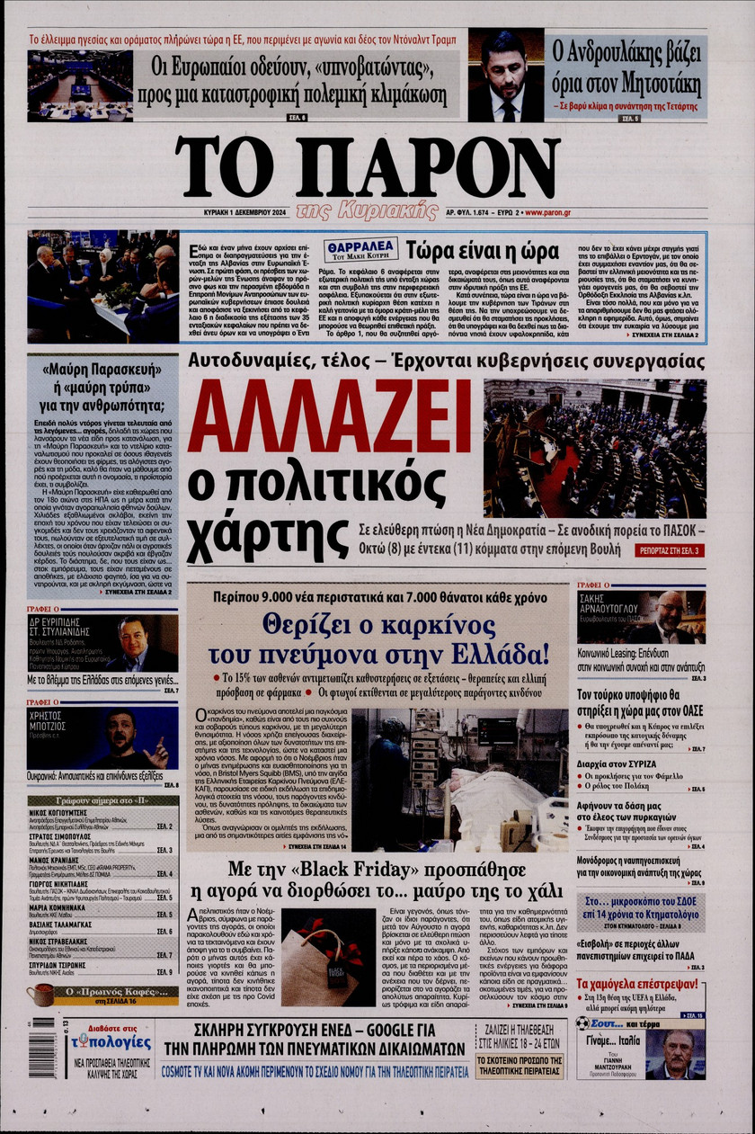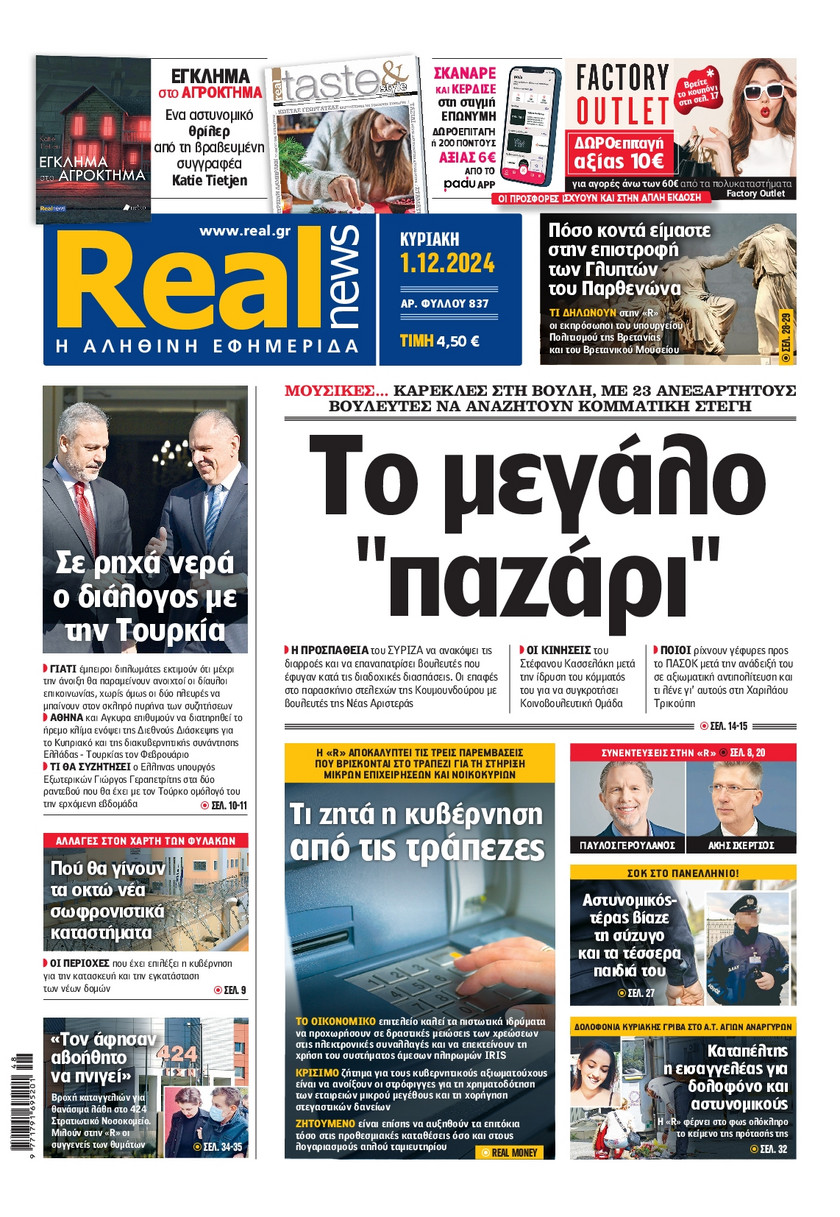 Το νέο τοπίο που έχει διαμορφωθεί στη Βουλή των Ελλήνων με τους 23 συνολικά ανεξάρτητους βουλευτές και τα κομματικά παζάρια πού γίνονται για το που θα ενταχθούν, οι νέες παρεμβάσεις που σκοπεύει να κάνει η κυβέρνηση στις τράπεζες προκειμένου να στηρίξουν περαιτέρω τις μικρές επιχειρήσεις και τα νοικοκυριά και το μεγάλο πρόβλημα που υπάρχει στην Ελλάδα με το εργατικό προσωπικό καθώς έργα ύψους 20 δισ. δεν έχουν ξεκινήσει να εκτελούνται λόγω έλλειψης εργατικών χεριών στα πρωτοσέλιδα των κυριακάτικων εφημερίδων.