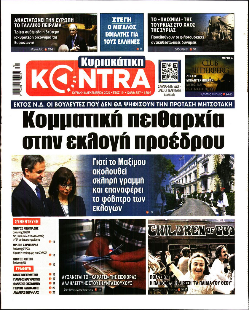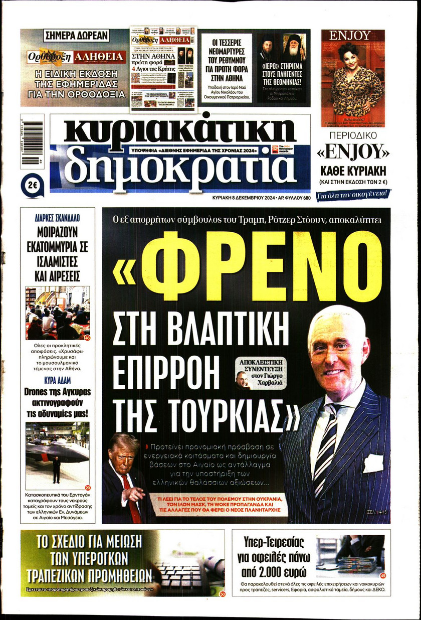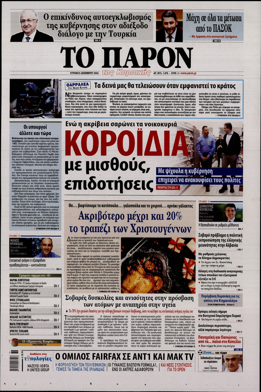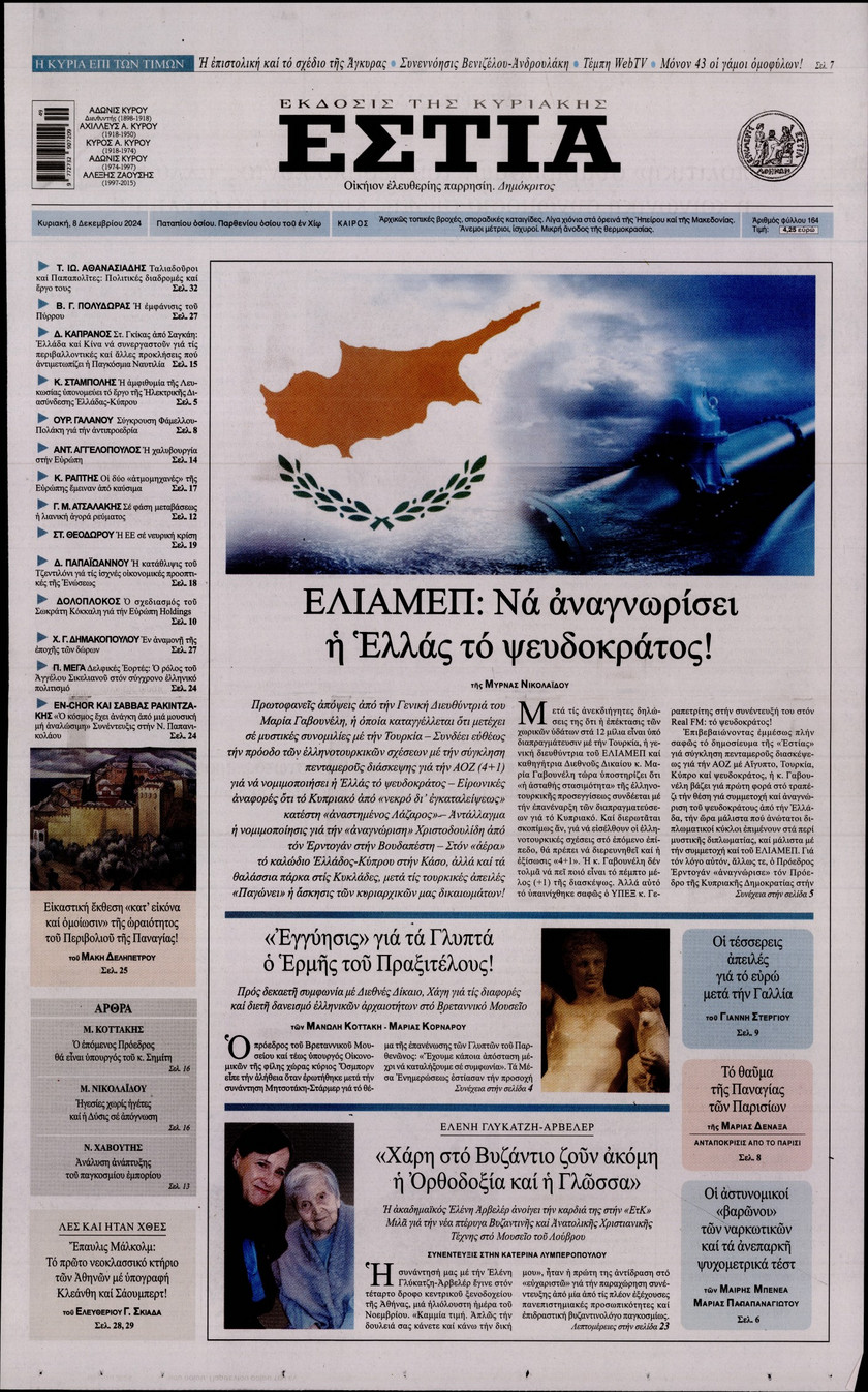 Οι εξαγγελίες του πρωθυπουργού Κυριάκου Μητσοτάκη όσον αφορά στις τράπεζες και οι παρεμβάσεις που συζητούνται για την προστασία των νοικοκυριών και των επιχειρπήσεων, η πρόοδος και τα «αγκάθια» για την επιστρογή των Γλυπτών του Παρθενώνα, τα σενάρια που εξετάζει η κυβέρνηση ώστε να προστατέψει τα παιδιά κάτω των 15 από τον διαδικτυακό εθισμό και τα νέα ψηφιακά εργαλεία για την αντιμετώπιση των ακραίων καιρικών φαινομένων και των επιπτώσεων από την κλιματική κρίση ξεχωρίζουν στα πρωτοσέλιδα των κυριακάτικων εφημερίδων.